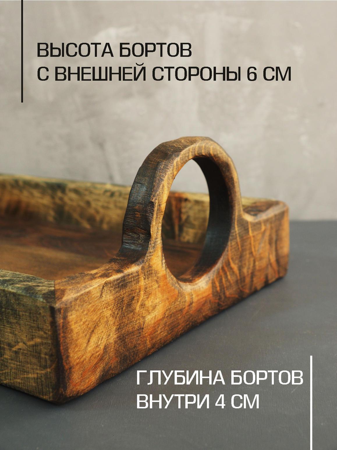 Поднос деревянный прямоугольный декоративный с бортами и ручками информация: