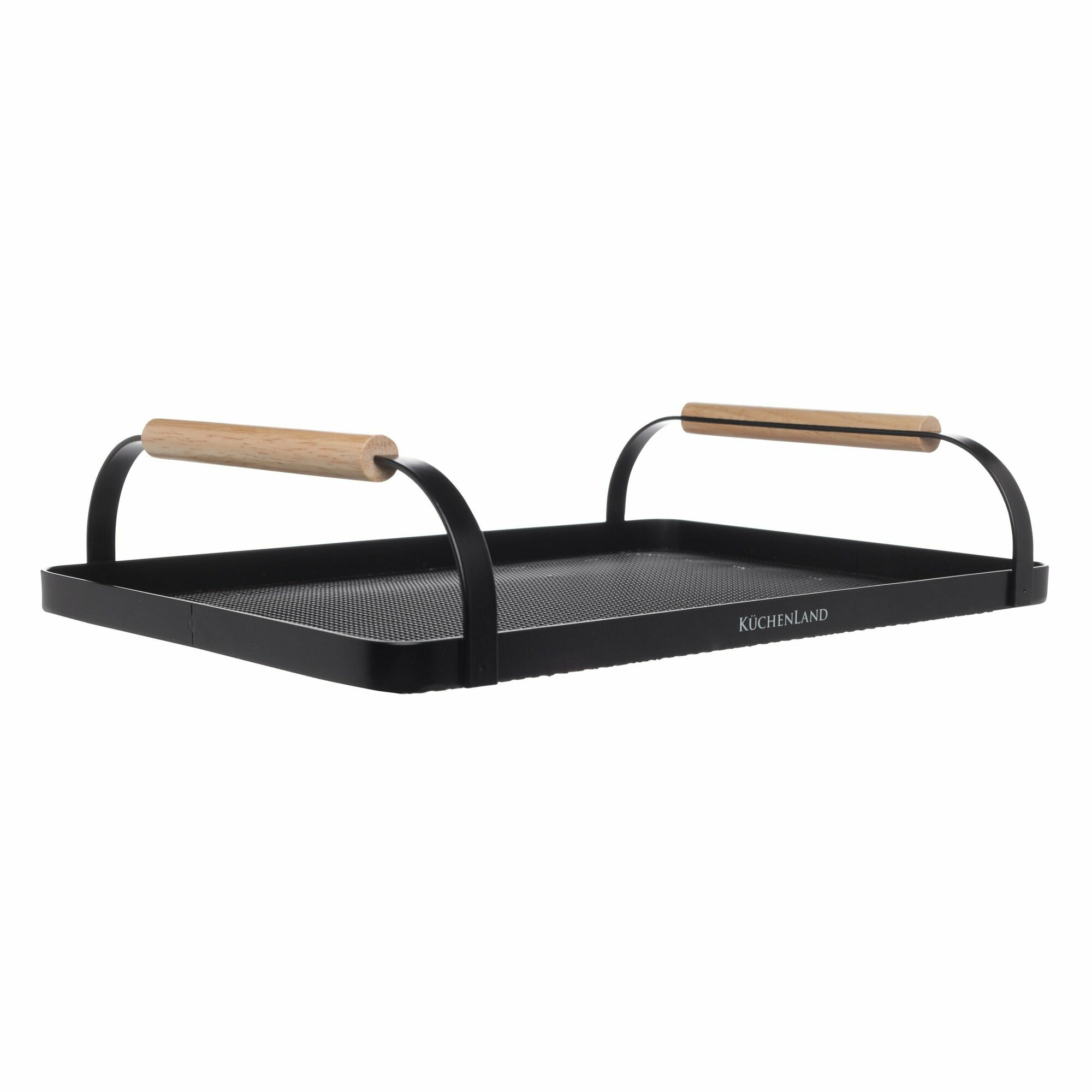 10 цен на Поднос, 33х23 см, с ручками, металл/дерево, прямоугольный, черный, Black style