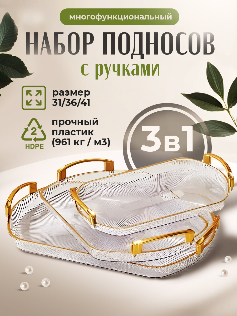 Отзывы на Набор подносов Conflate, пластик, поднос декоративный, золотистые ручки, прямоугольный, 3 шт