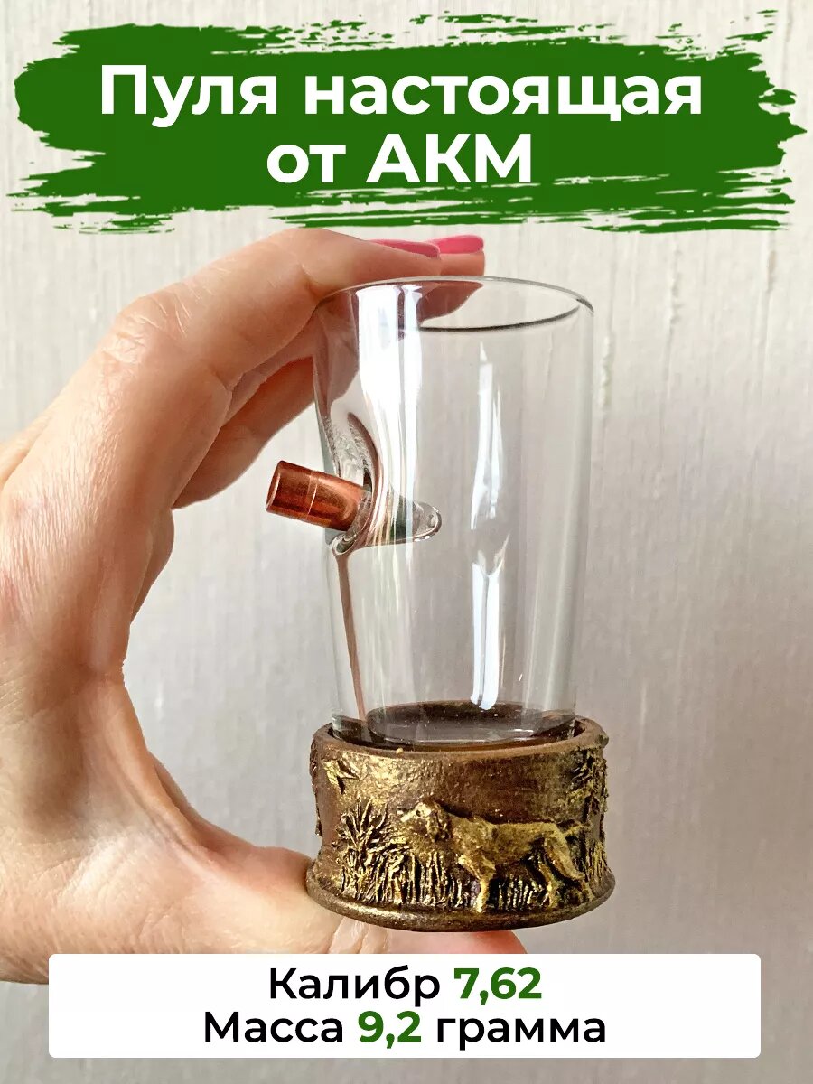 10 цен на Рюмка с пулей "Патрон", подарок охотнику, стекло/полистоун, ручная работа, 50 мл, АБ Сувениры