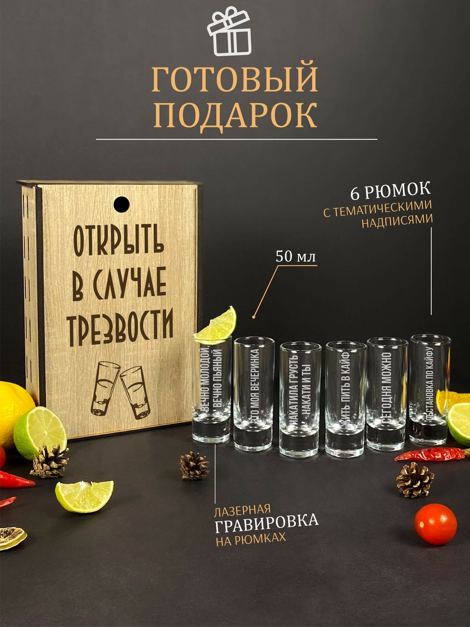 10 цен на Подарочный набор стопок Открыть в случае трезвости. Рюмки для водки, коньяка, текилы в подарок мужчине и женщине на день рождения.