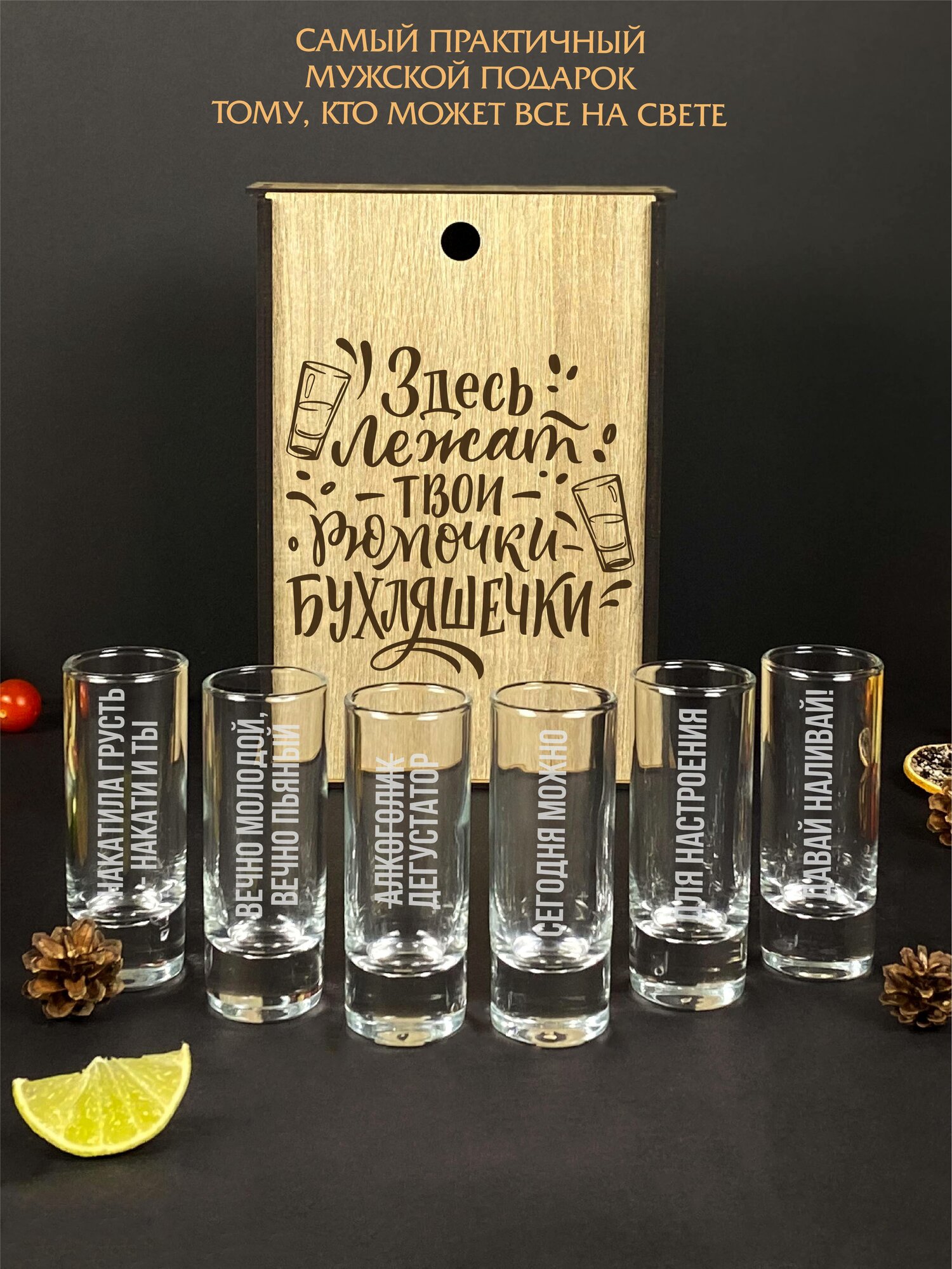 Подарочный набор стопок Бухляшечки. Рюмки для водки, коньяка, текилы в подарок мужчине и женщине на день рождения. информация: