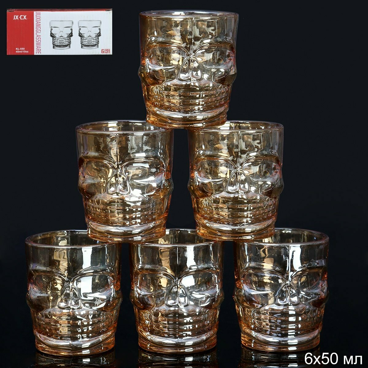 Стопка 50 мл Череп - 6 штук / золото информация: