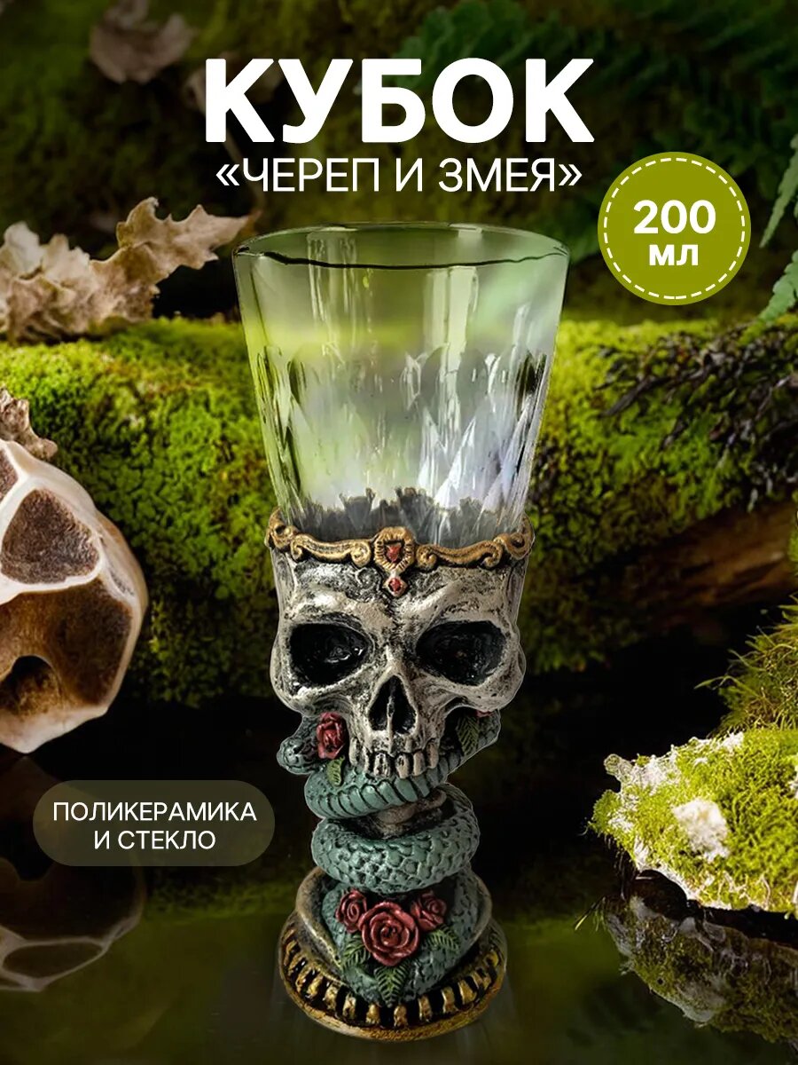 Отзывы на Стакан, 200 мл, Череп и змея, кубок, стекло/полистоун, АБ Сувениры