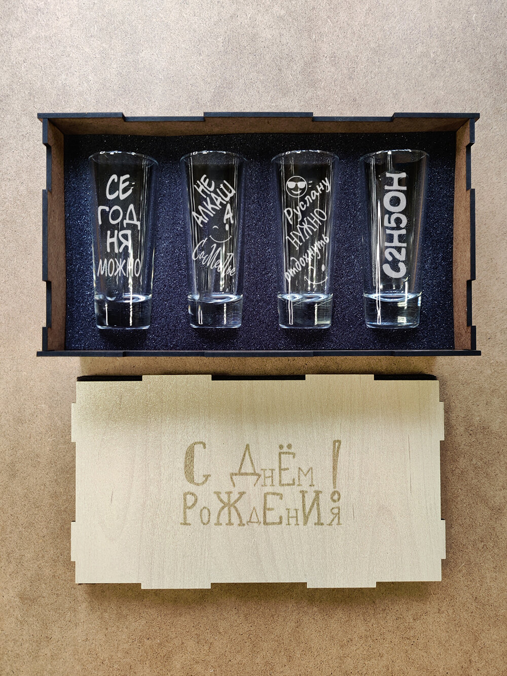 Подарочный набор стопок в коробке с гравировкой - ДР Руслан информация: