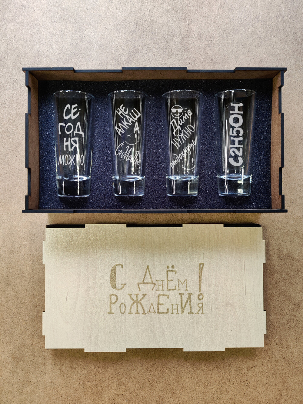 Подарочный набор стопок в коробке с гравировкой - ДР Макс 945 ₽