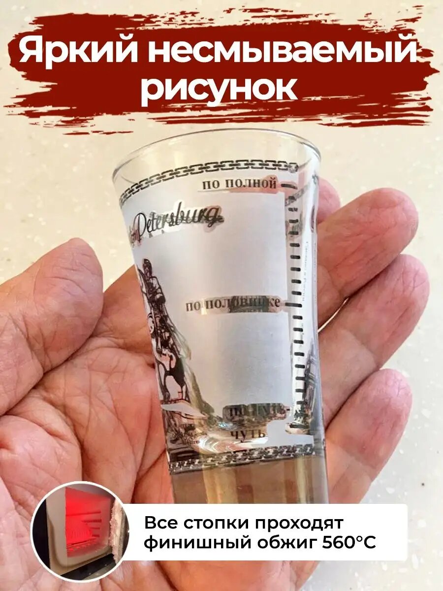 Рюмки "ПИТЕР" с меркой, стекло, 50мл, набор 2 шт, АБ "Сувениры" информация: