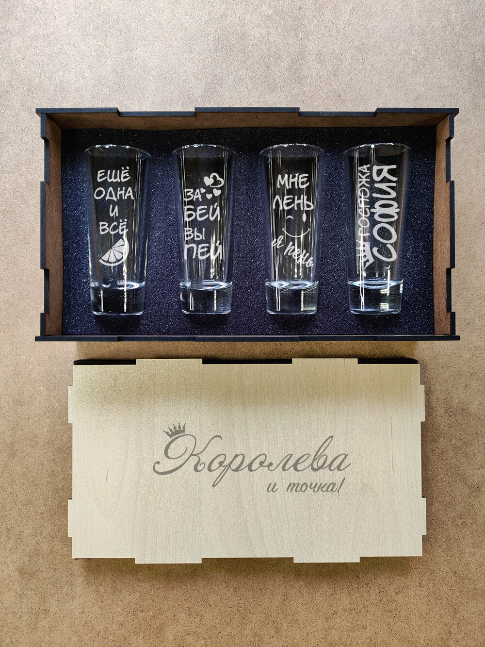 Подарочный набор стопок в коробке с гравировкой - Королева София информация: