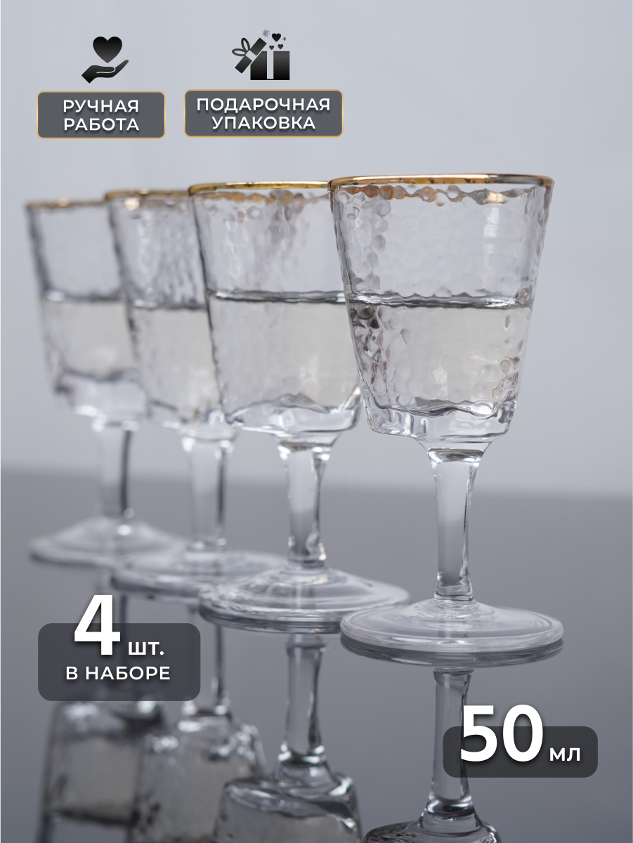 10 цен на Рюмки для водки Reyer 4 шт, 50 мл, ручная работа, имитация поверхности льда