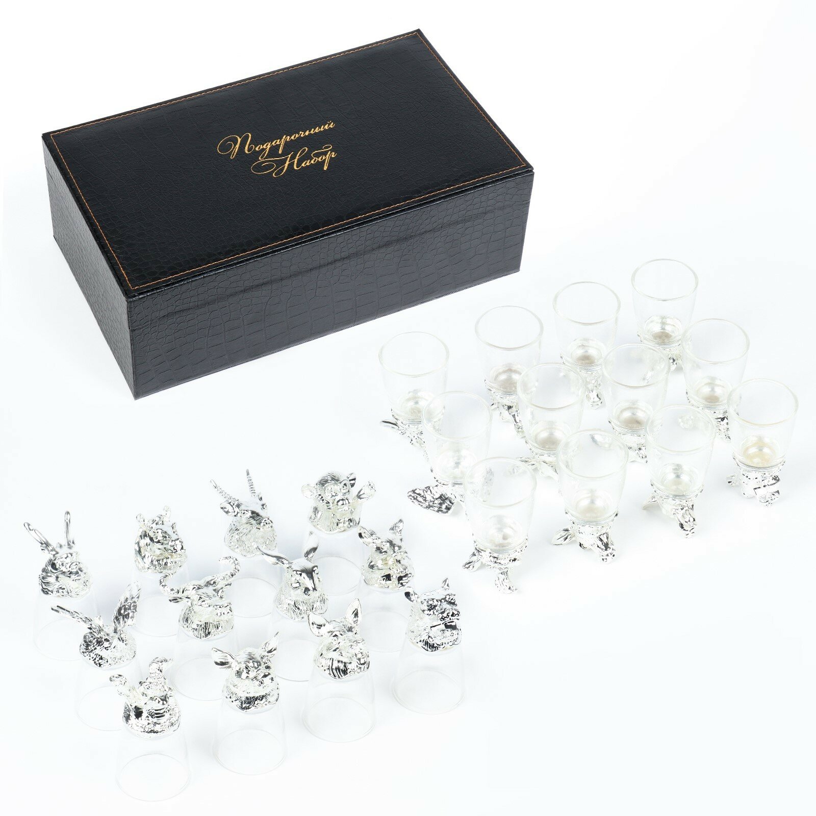 10 цен на Подарочный набор рюмок-перевёртышей на 12 персон, с графином 400 мл, рюмка 30 мл, серебро