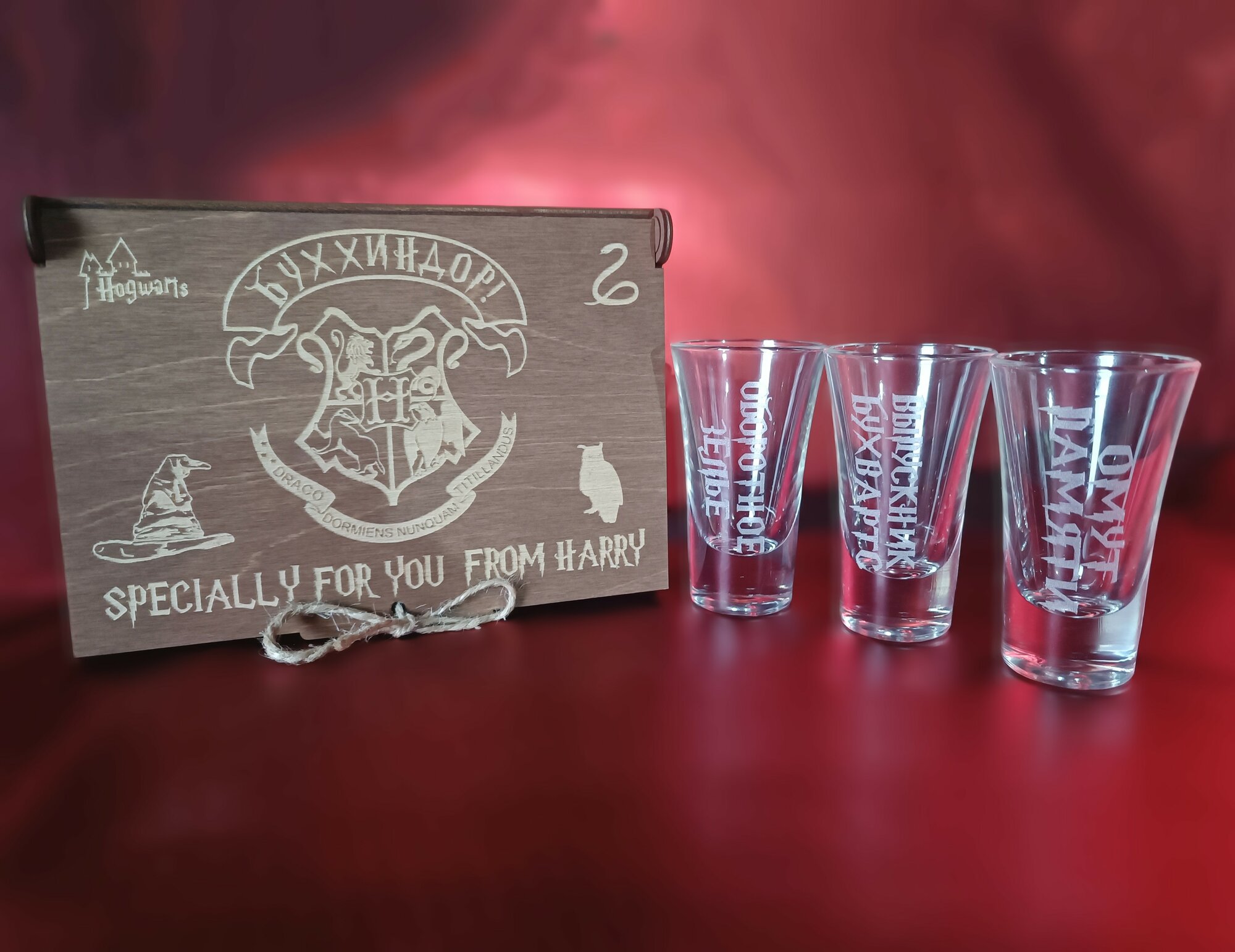 Подарочный набор "Буххиндор", 3 рюмки с гравировкой в подарочной коробке. информация: