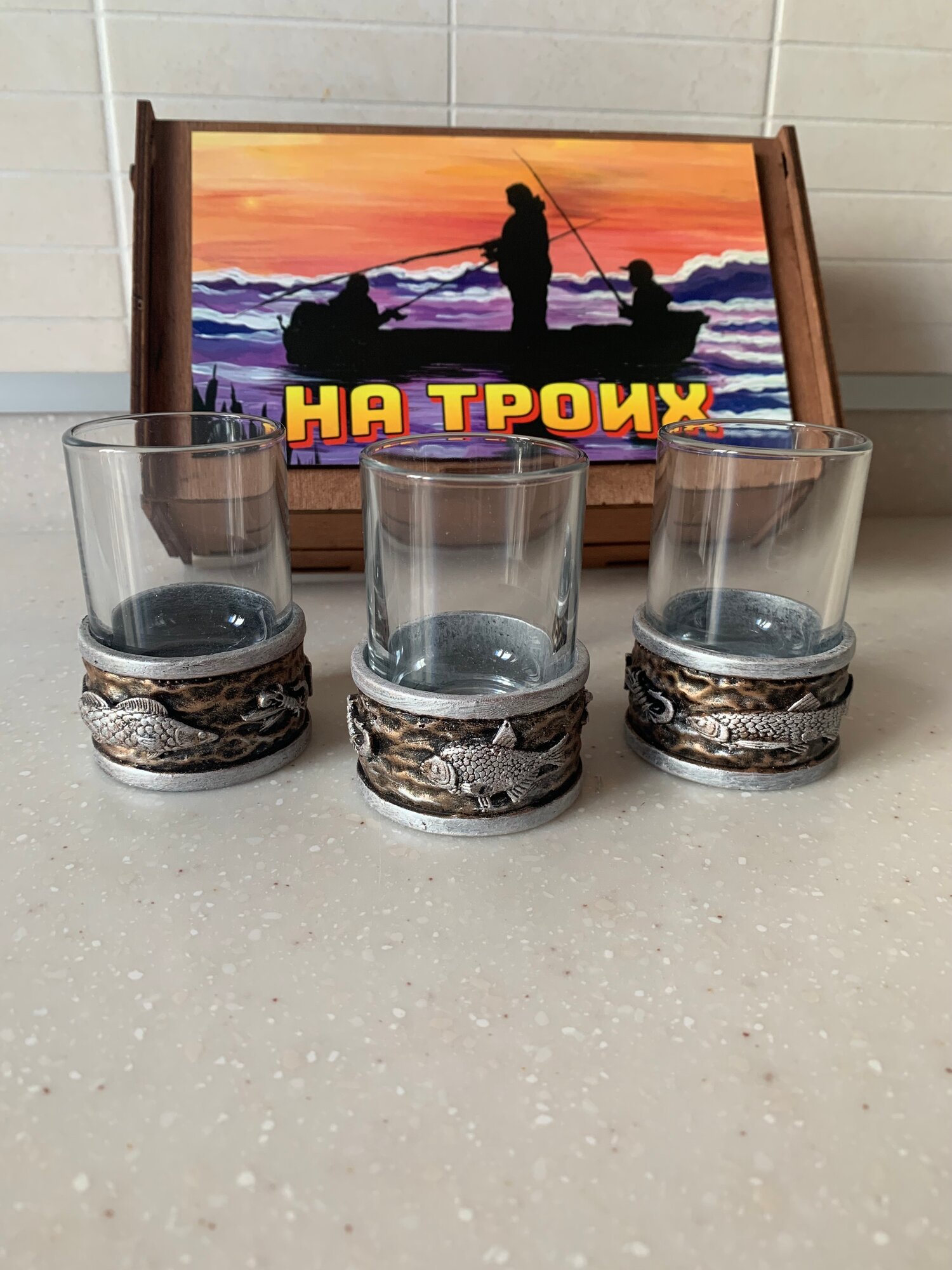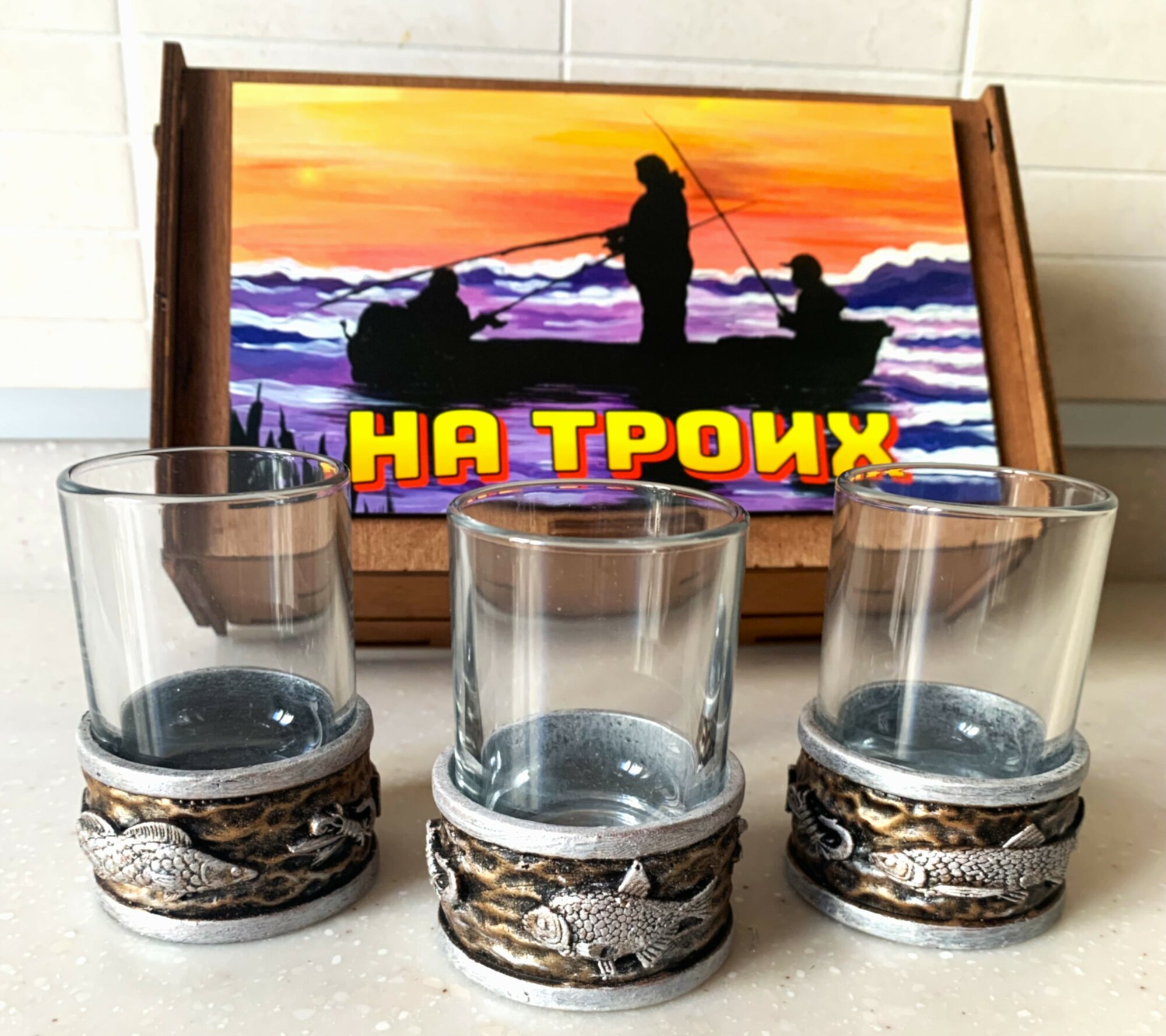 Отзывы на Набор рюмок АБ сувениры "Подарок рыбаку" , для водки, коньяка, настоек, саке, текилы, 3шт, 50 мл