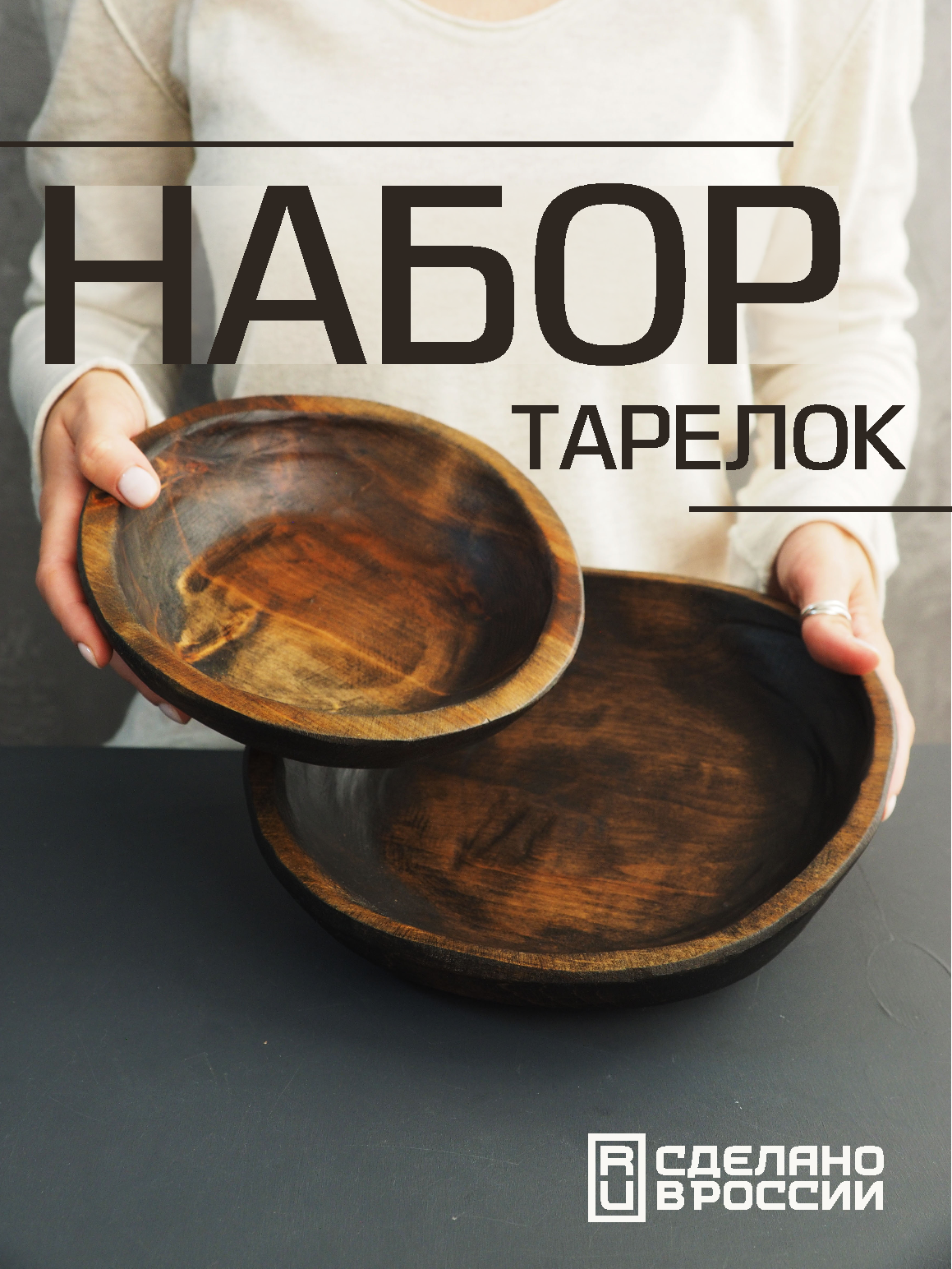 Набор из двух глубоких деревянных тарелок для сервировки стола информация: