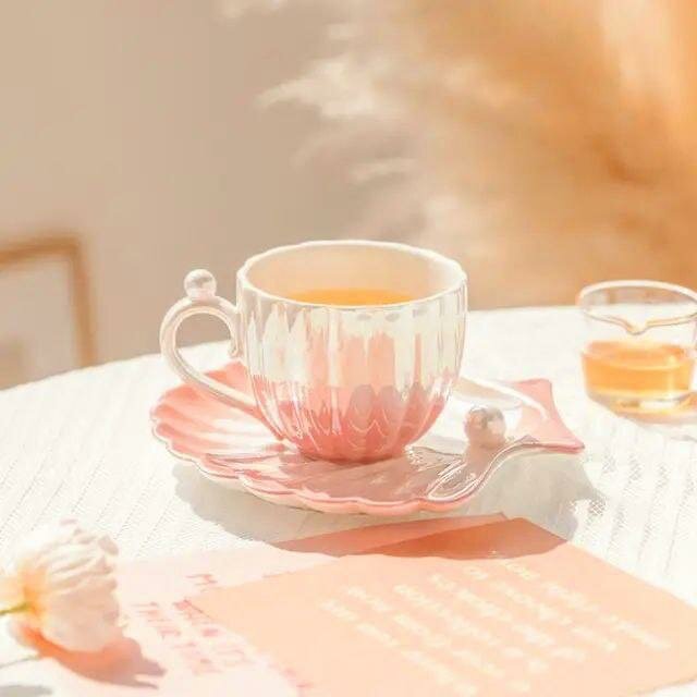 Чайная пара "Жемчуг", фарфоровая, жемчужно розовый информация: