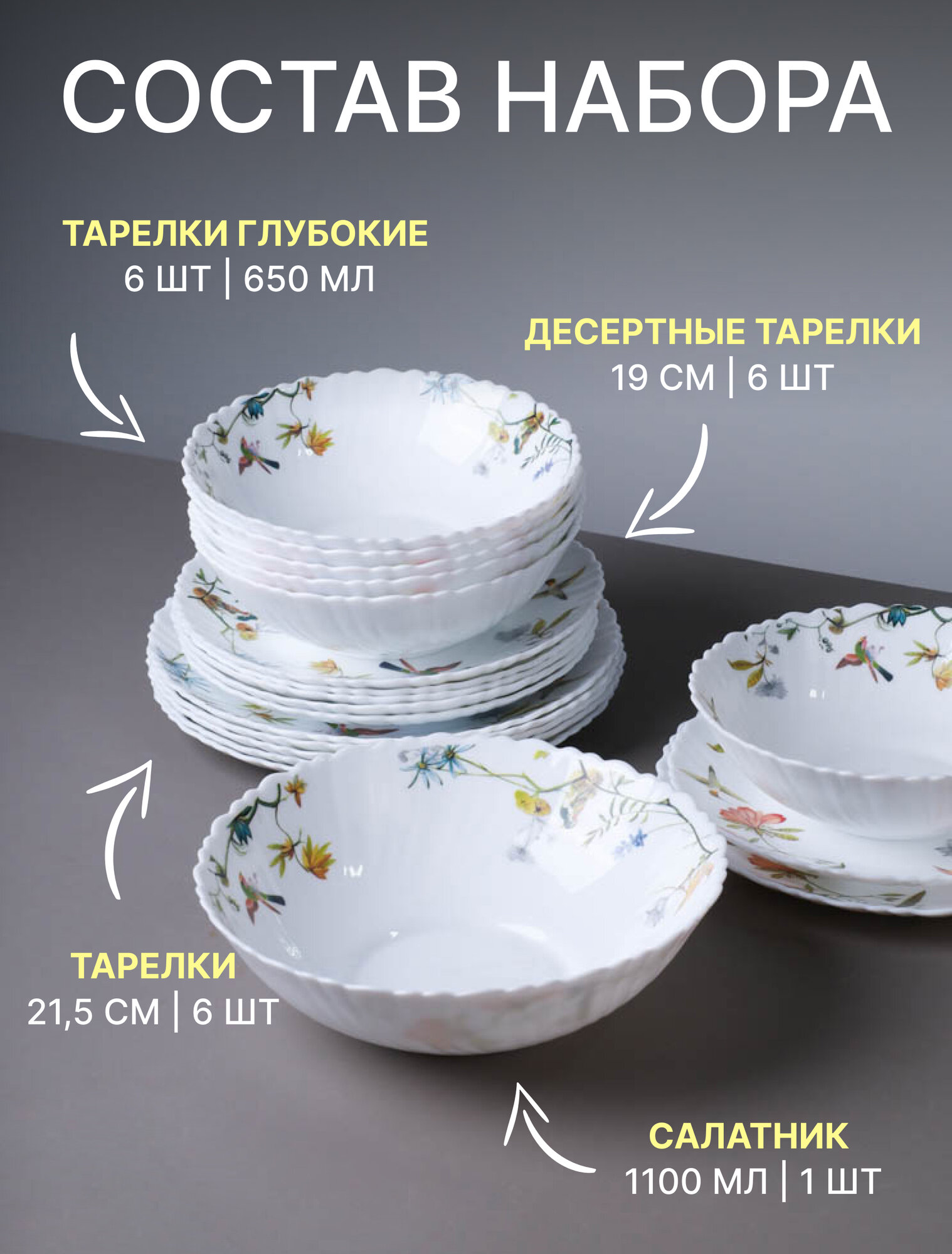 10 цен на Набор столовой посуды WHITE LILY "Colibri" 19 предметов на 6 персон