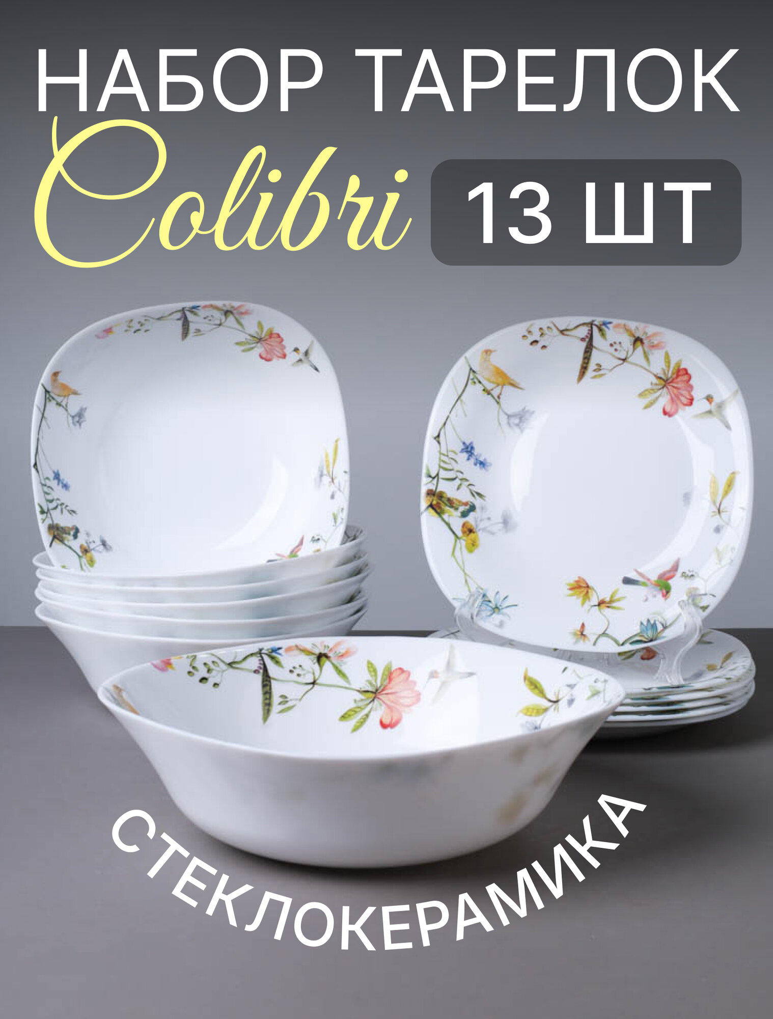 Столовый набор 13 предметов квадратный WHITE LILY "Colibri" на 6 персон 2 849 ₽