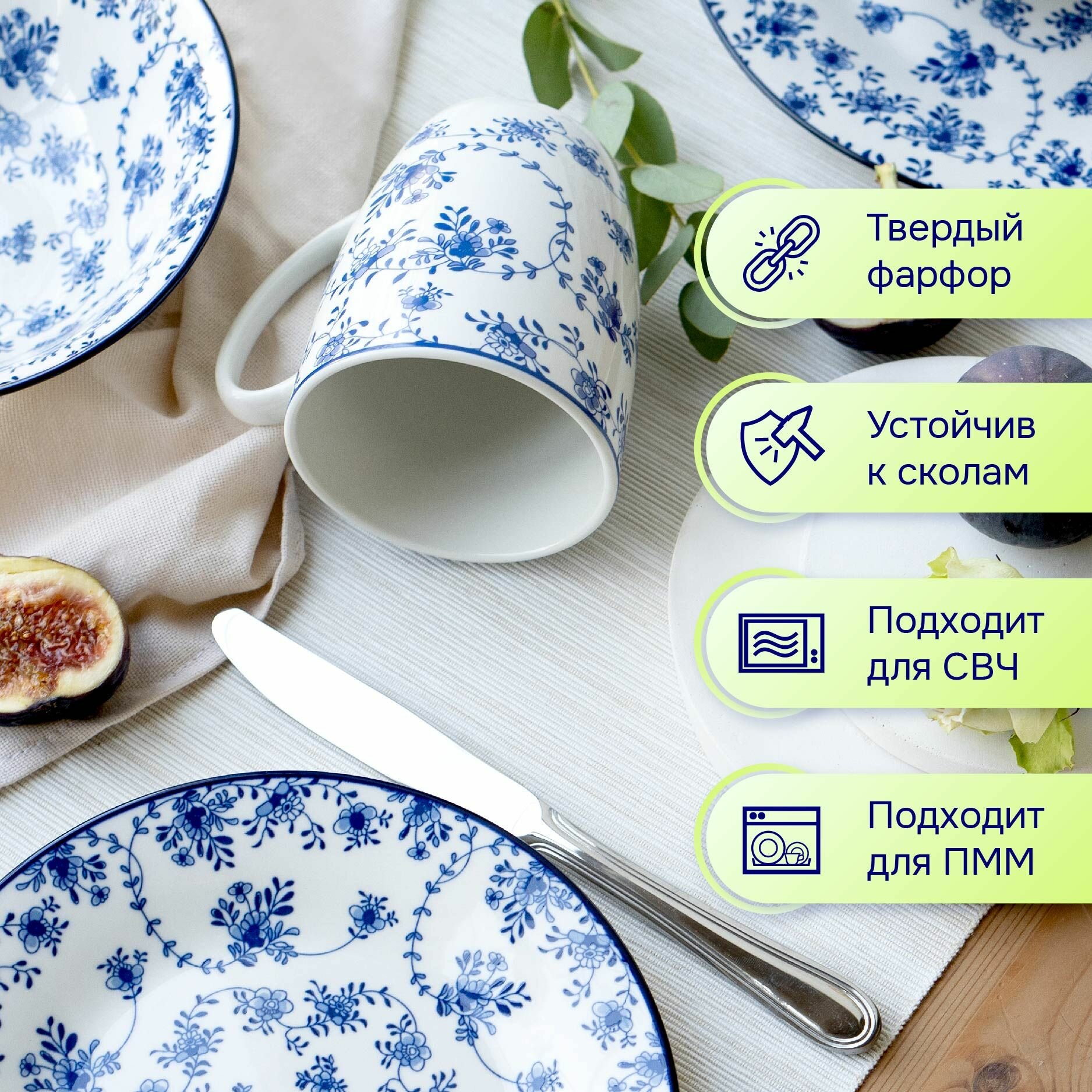 Отзывы на Набор посуды столовой фарфор 4 персоны 16 предметов "Голубой ситец" столовый сервиз обеденный Коралл