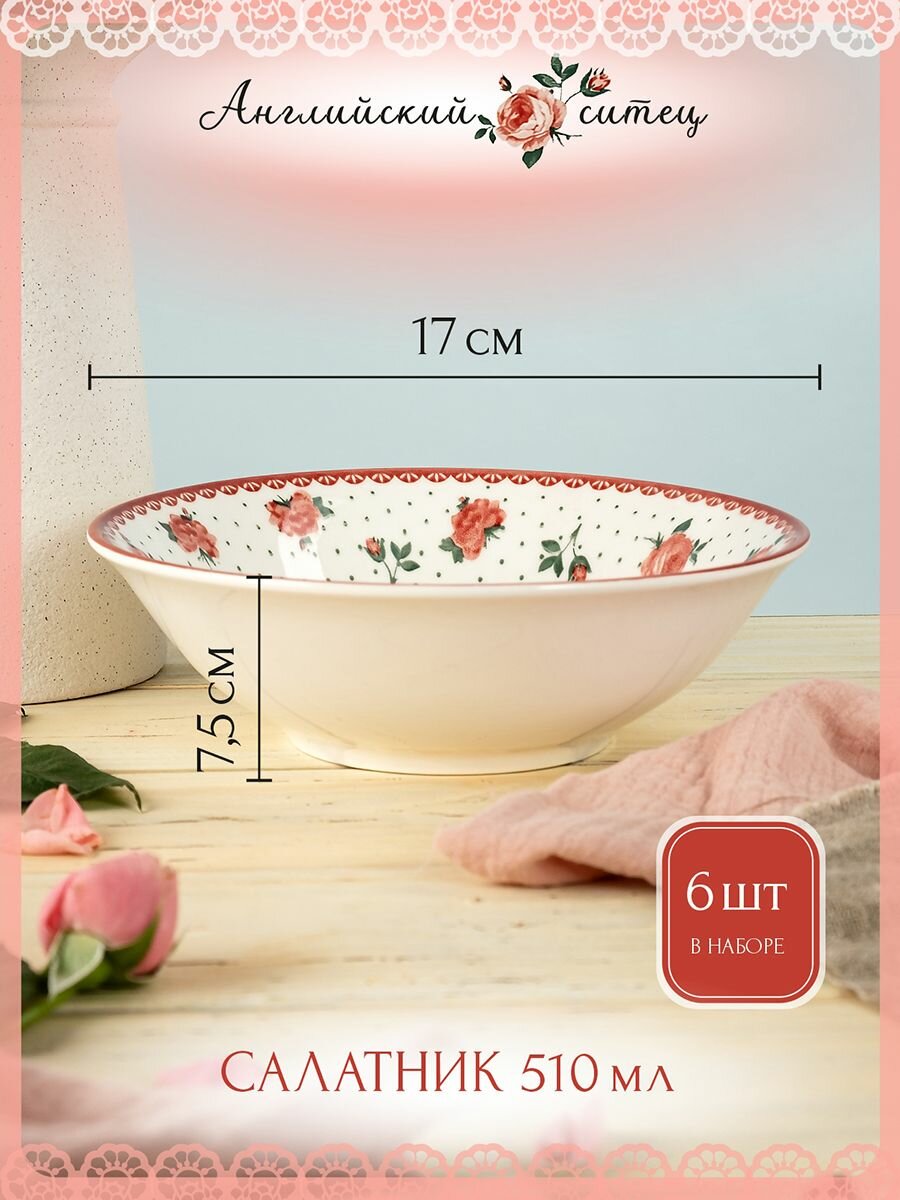 Салатник 480 мл 155 мм тарелка глубокая WHITE LILY "Кустовая роза" 6 штук