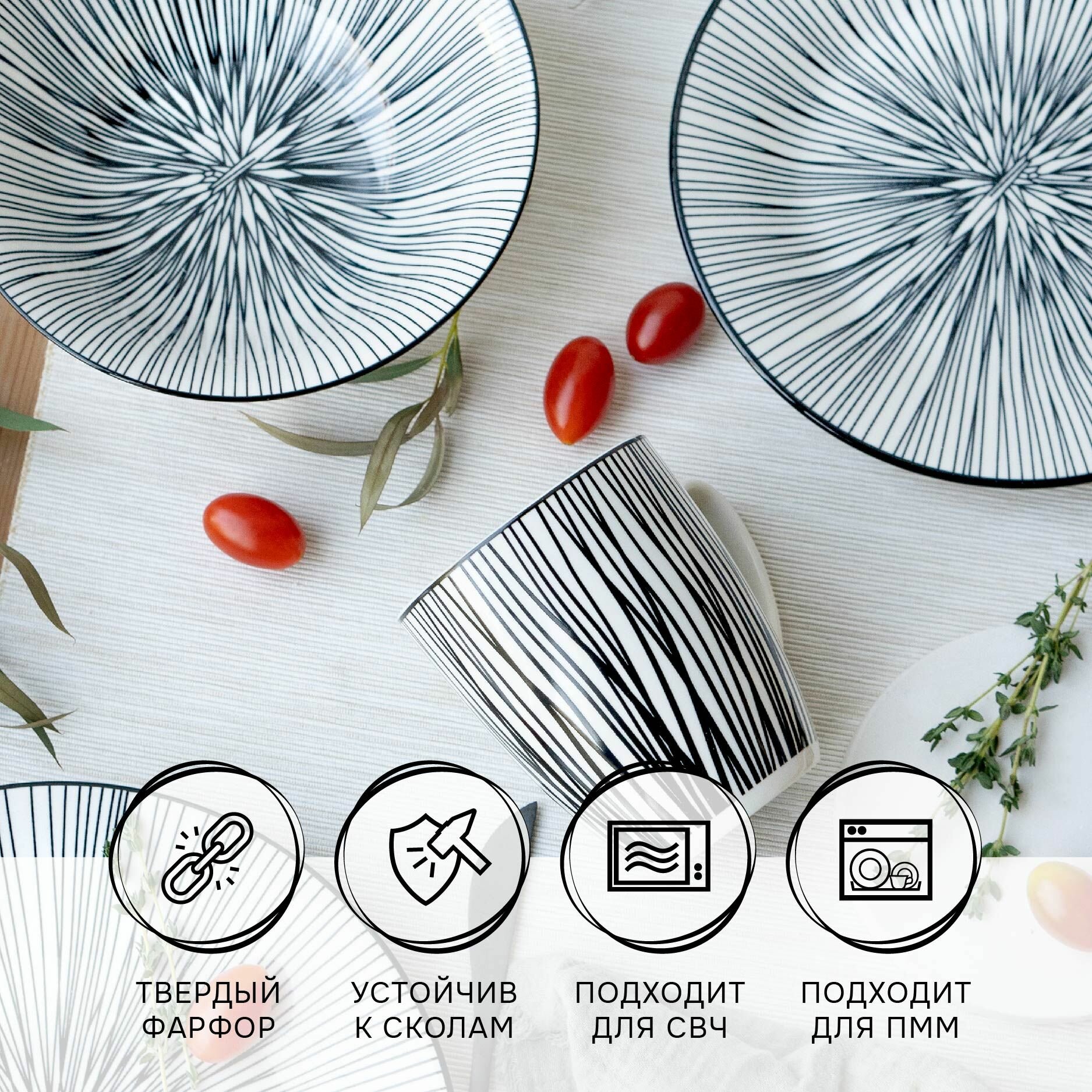 Набор посуды из фарфора "Line_2" на 4 персоны 16 предметов. Сервиз обеденный семейный 5 500 ₽