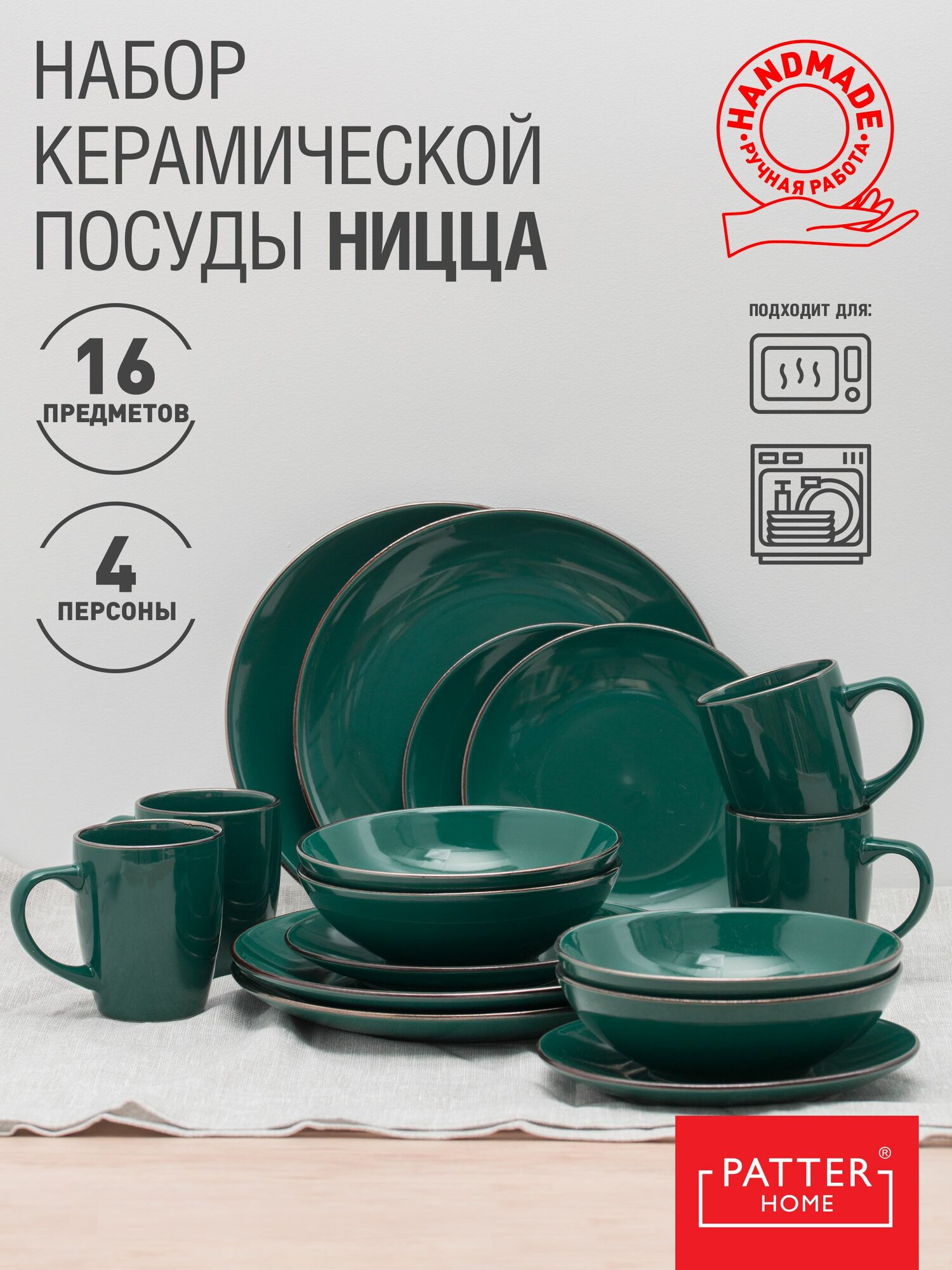 10 цен на Столовый сервиз для кухни керамический на 4 персоны "Ницца", 16 предметов с кружками для напитков, цвет бирюзовый