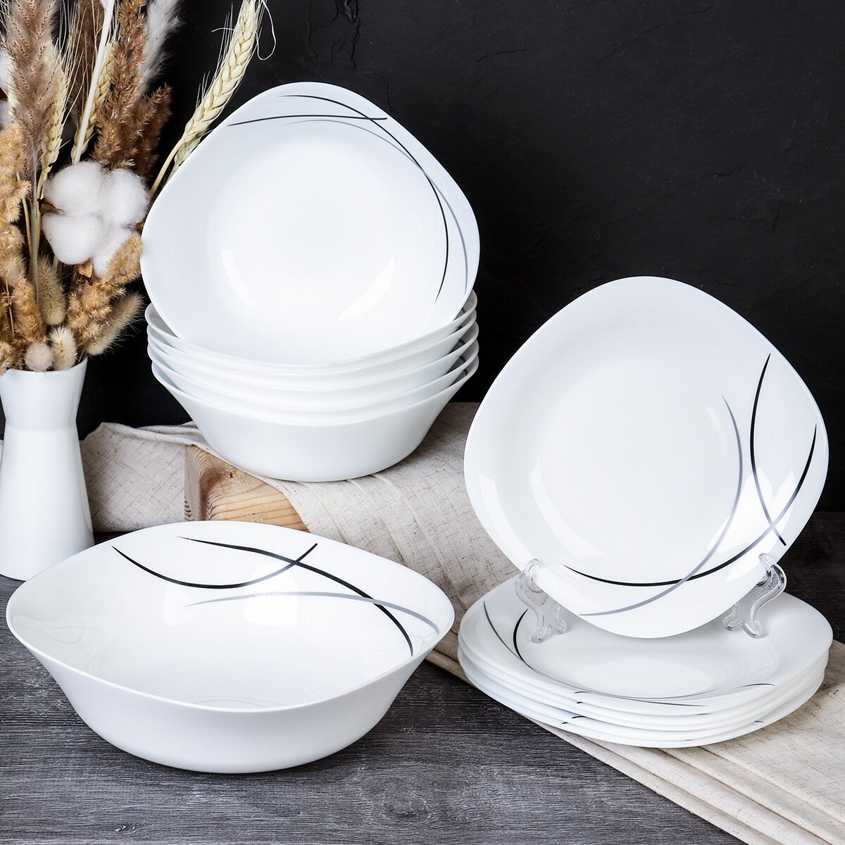 10 цен на Столовый набор посуды квадратный "Абстракция-2" на 6 персон 13 предметов, большой салатник и глубокие суповые