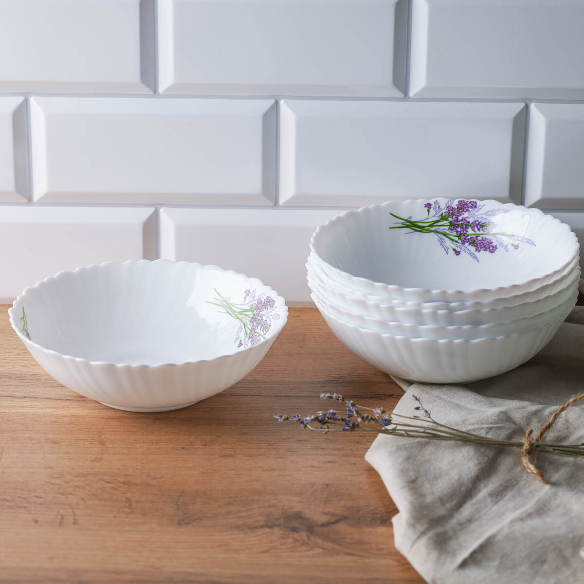 Набор глубоких тарелок для супа, салата 500 мл "Букет лаванды" 6 штук 1 200 ₽