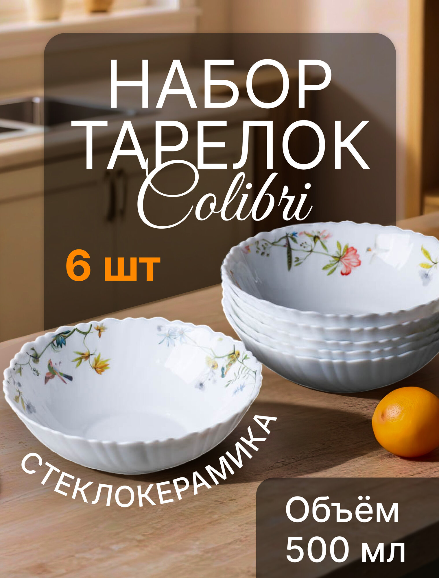 10 цен на Салатник 500 мл 155 мм тарелка глубокая WHITE LILY "Colibri" 6 шт