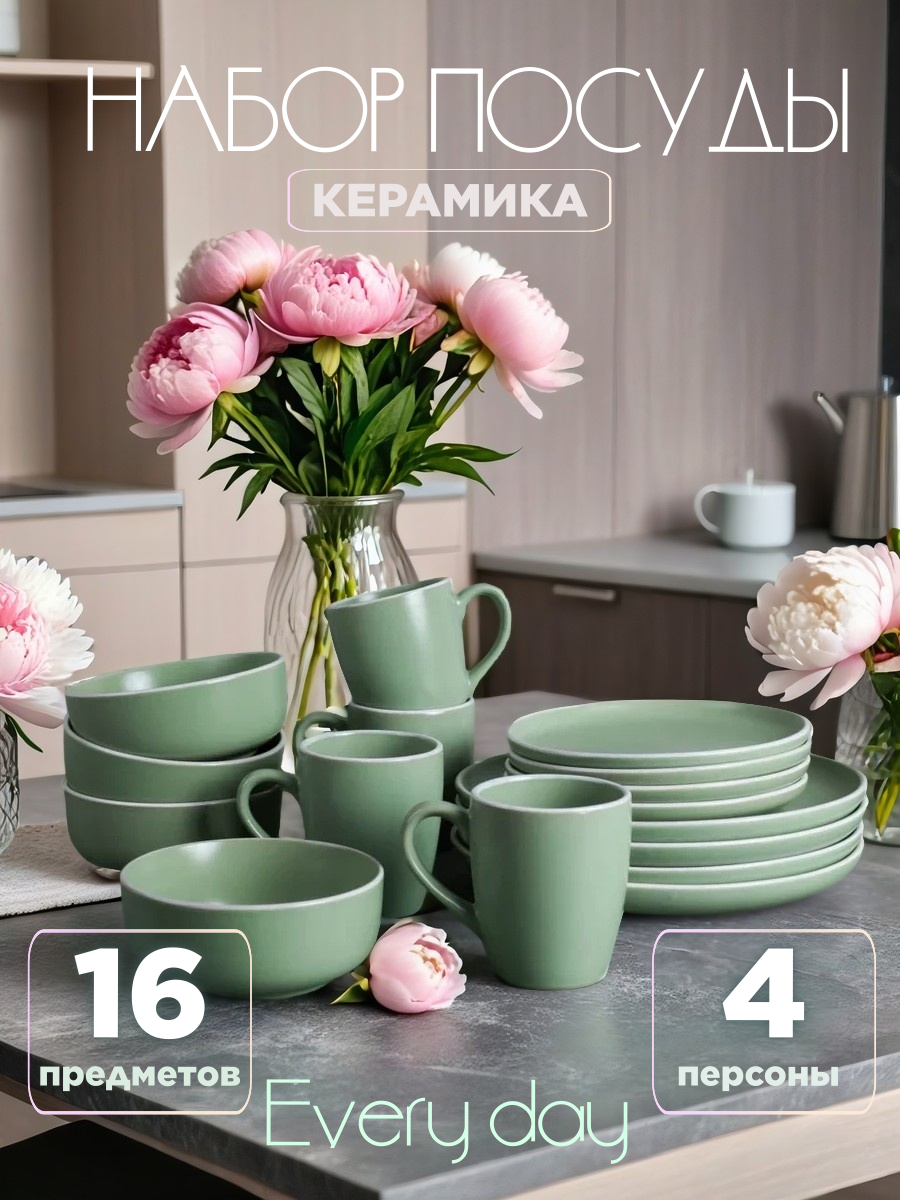 10 цен на Набор столовой посуды на 4 персоны Every Day / 16 предметов нежно зеленый