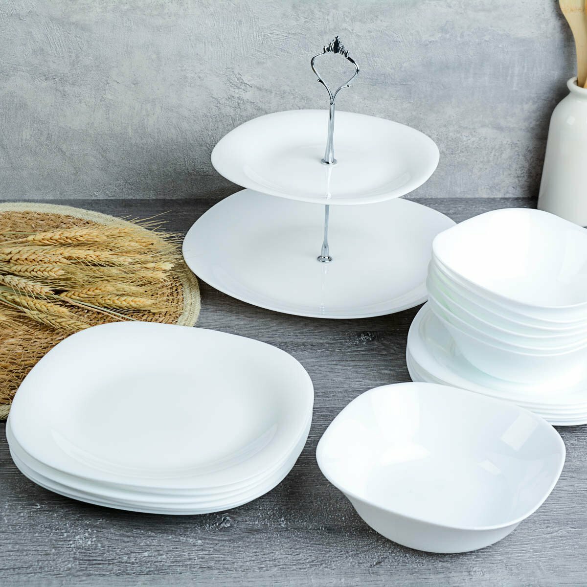 10 цен на Набор посуды "Белый квадрат" на 6 персон 20 предметов / Сервиз столовый с фруктовницей