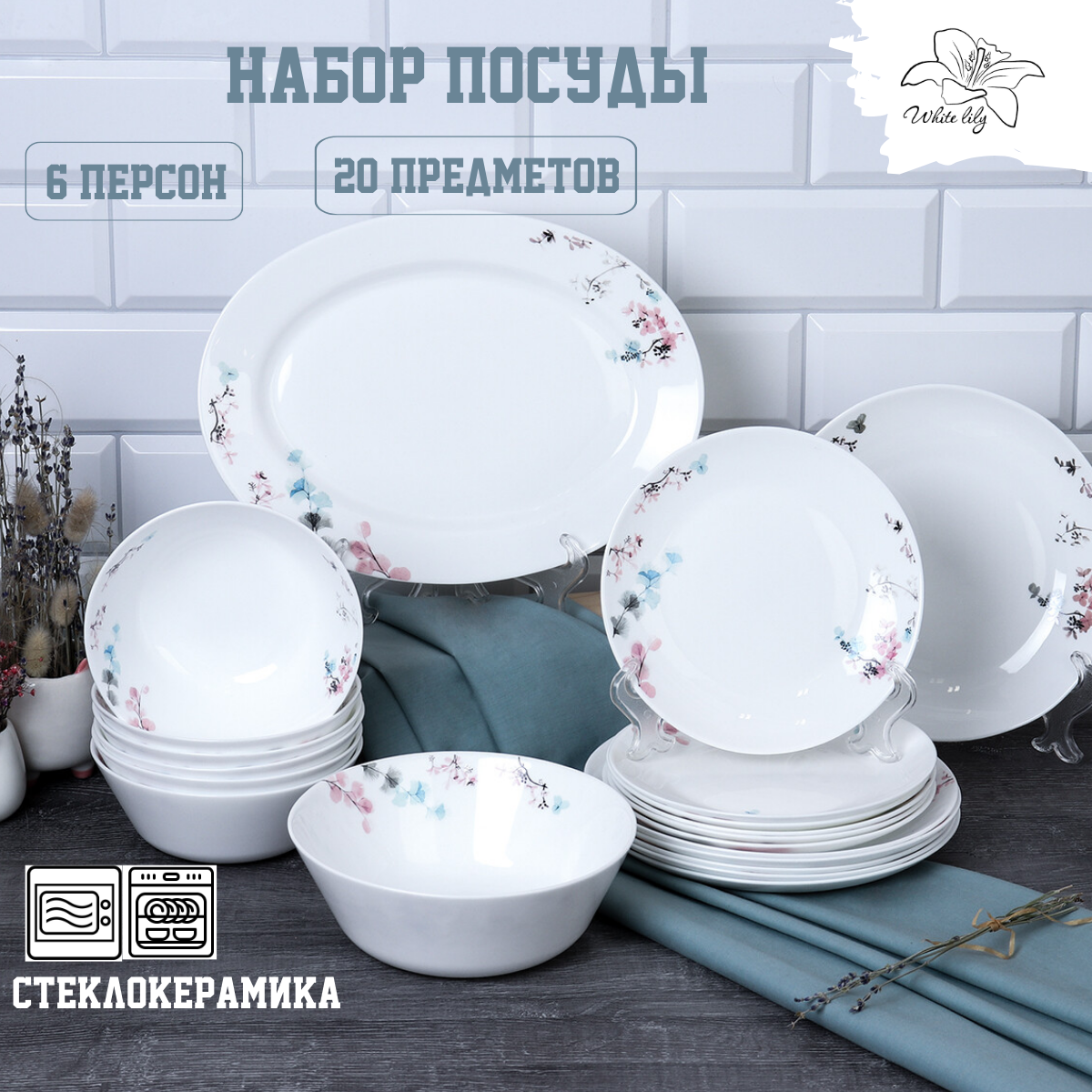 Столовый набор посуды "Ветка орхидеи" на 6 персон, сервиз столовый 20 предметов с блюдом 3 700 ₽
