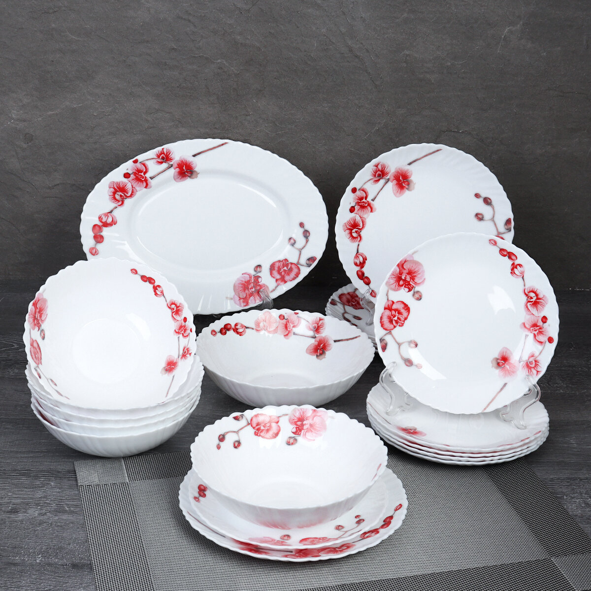 10 цен на Столовый набор посуды "Ветка орхидеи" на 6 персон, сервиз столовый 20 предметов с блюдом