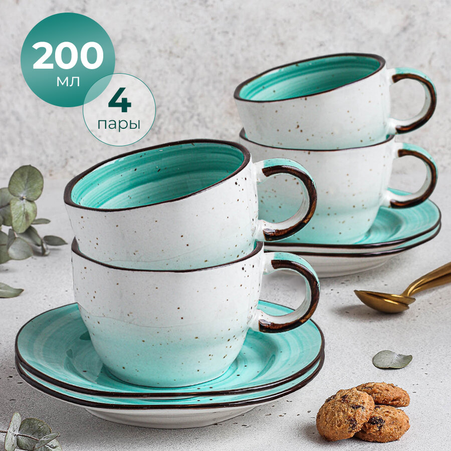 10 цен на Набор для чаепития Ocean Fusion, чашки с блюдцем, 200 мл, 4 пары
