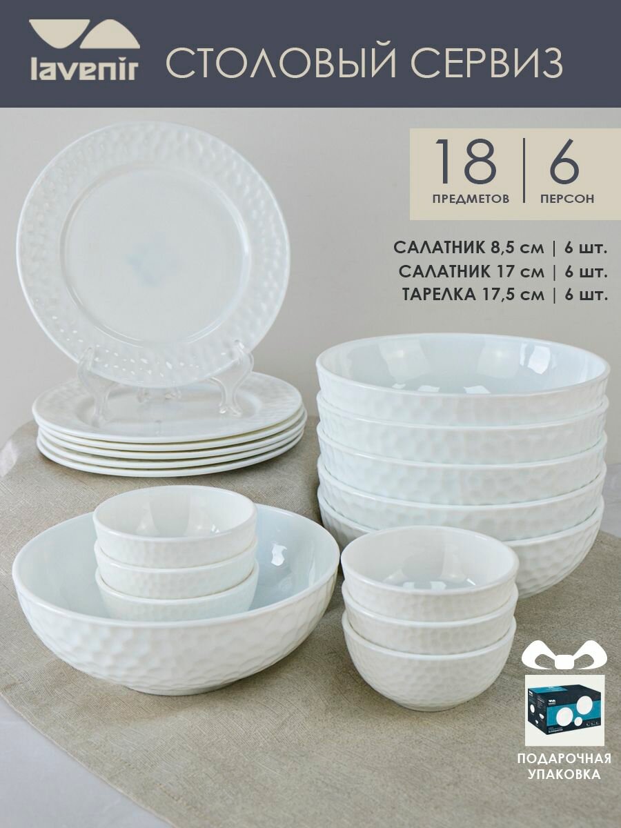 10 цен на Столовый сервиз на 6 персоны из стеклокерамики, 18 предметов, белый