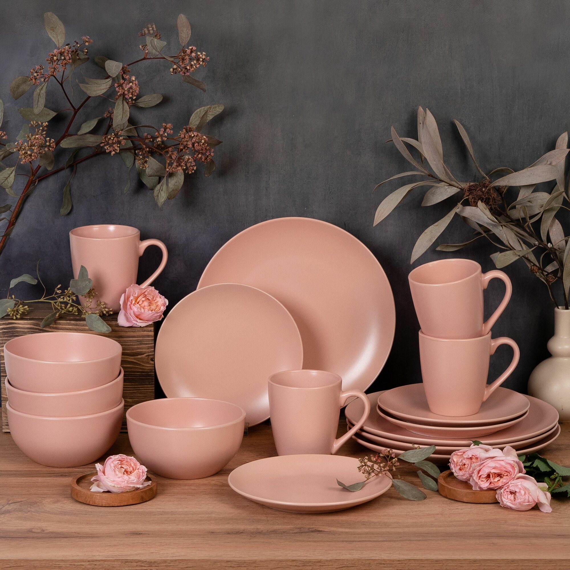 Набор посуды на 4 персоны 16 предметов керамика "Color light pink", столовый сервиз обеденный 7 947 ₽