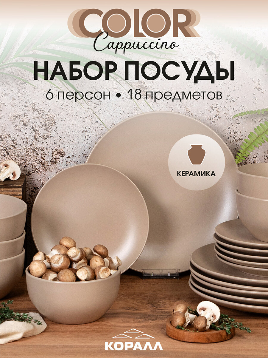 Набор посуды на 6 персон 18 предметов керамика "Color cappuccino", столовый сервиз обеденный 7 591 ₽