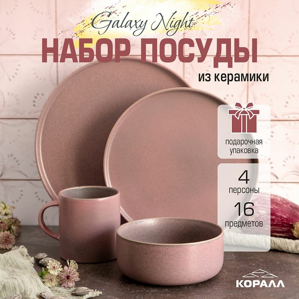 10 цен на Набор посуды из керамики 16 предметов 4 персоны "Galaxy night" в подарочной упаковке с салатниками, столовый сервиз обеденный