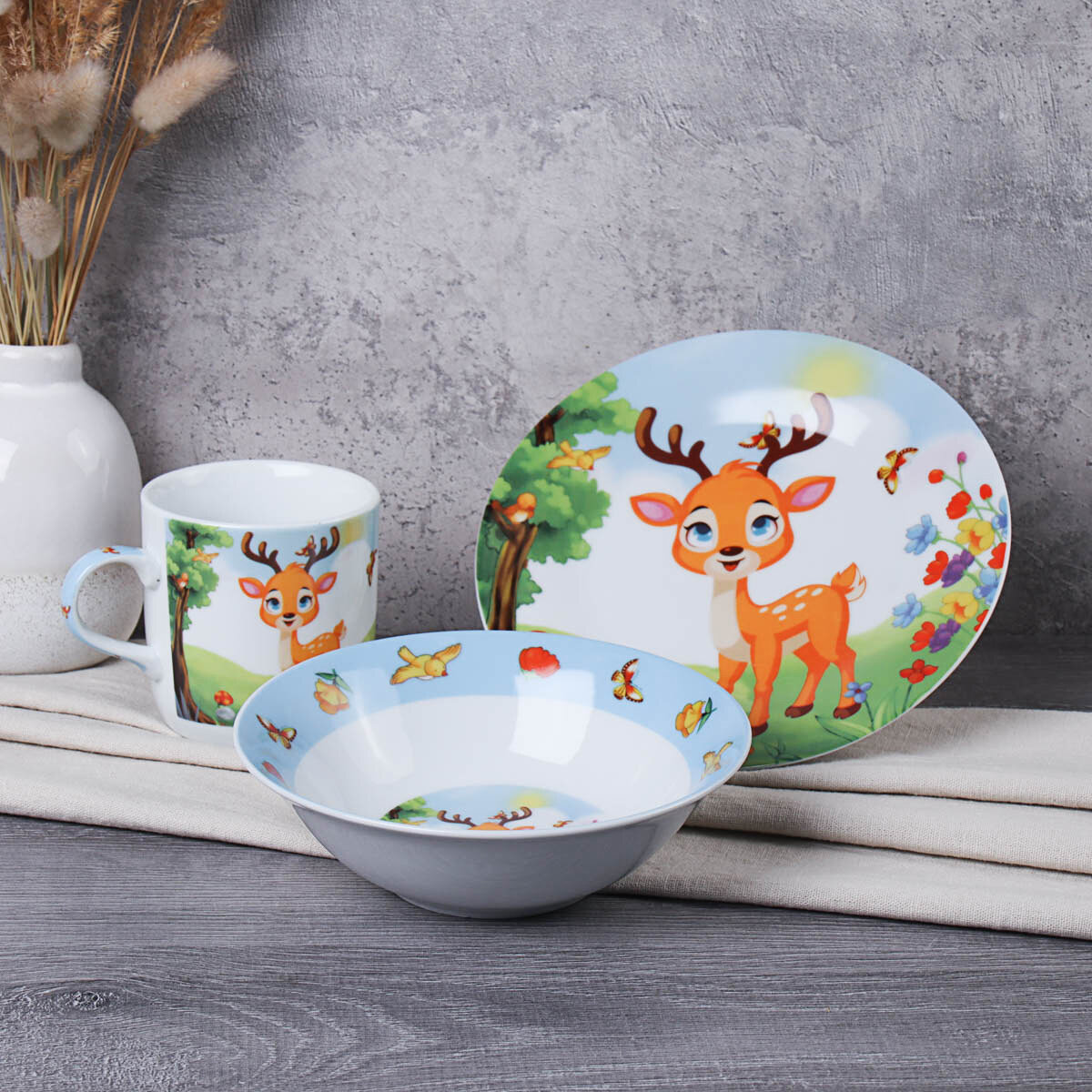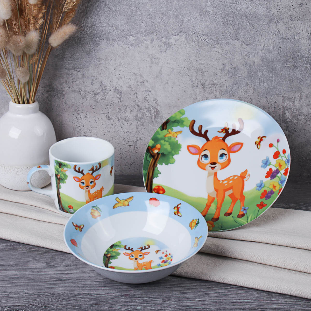 Набор детской посуды 3 предмета "Олененок" посуда для ребенка информация: