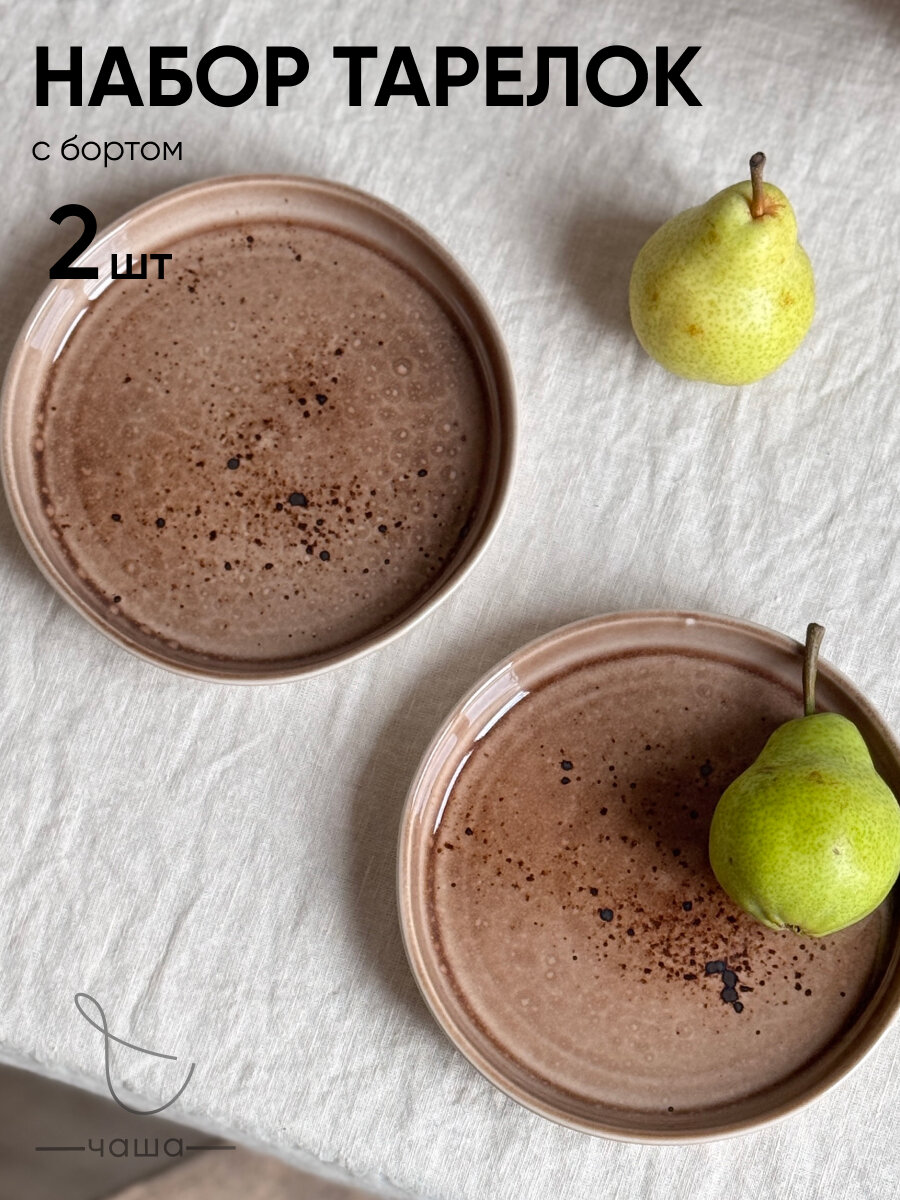 Набор тарелок с бортом 2 шт Chasha, тарелки фарфоровые коричневые информация:
