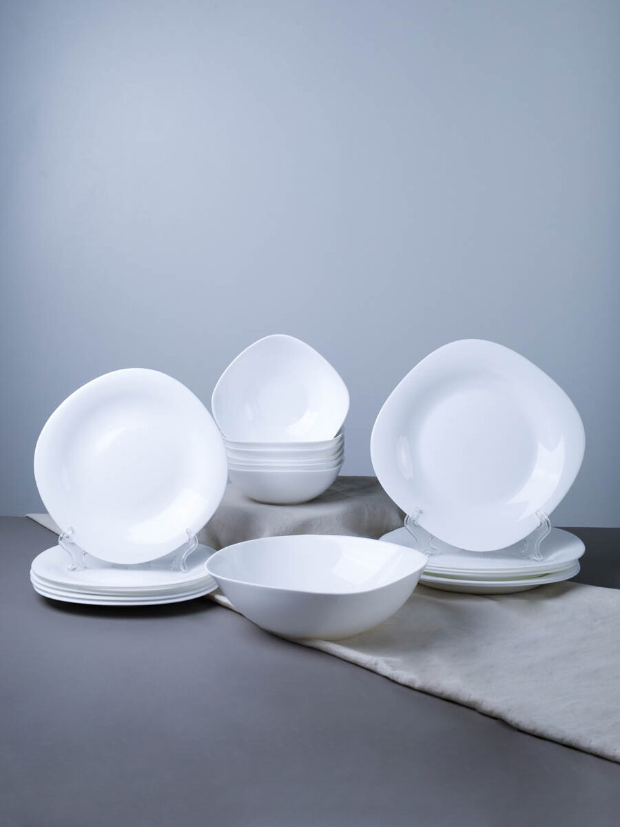 10 цен на Столовый набор посуды на 6 персон "Белый квадрат-2" 19 предметов, сервиз для сервировки
