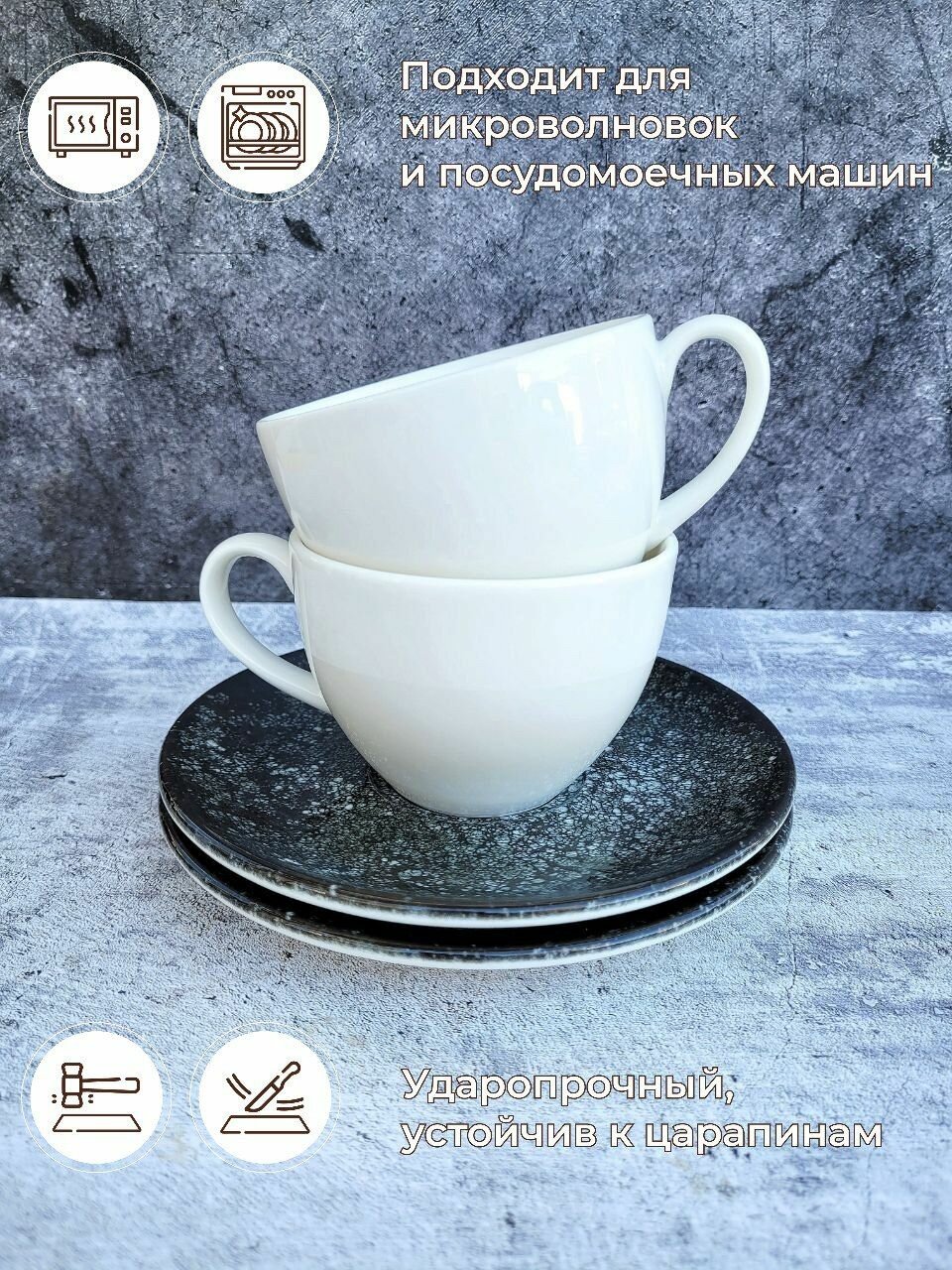 Отзывы на Чайные пары набор 2 шт, "Cosmos Black" 230 мл. Ударопрочный, профессиональный фарфор.