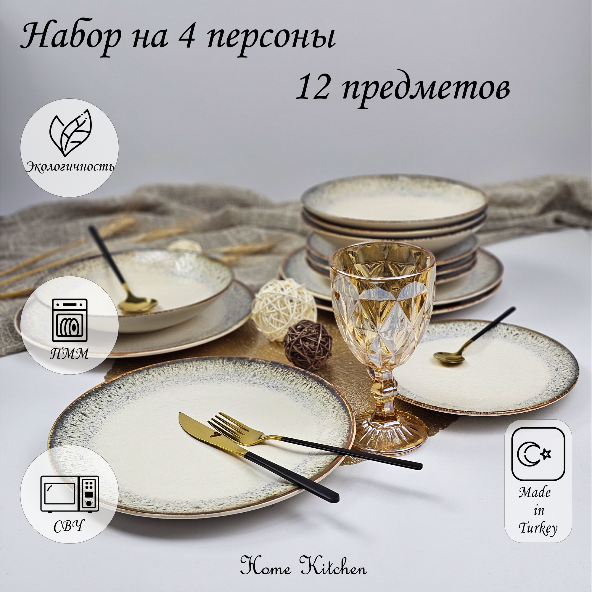 Набор столовой посуды бренда KERAMIKA серии "EGE" на 4 персон (12 предметов). информация: