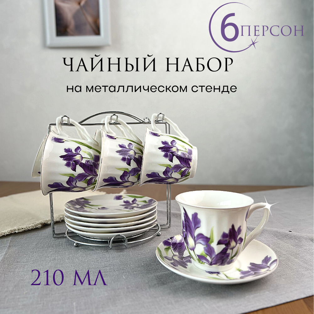 10 цен на Чайный набор на 6 персон на металлическом стенде 250 мл Ирисы