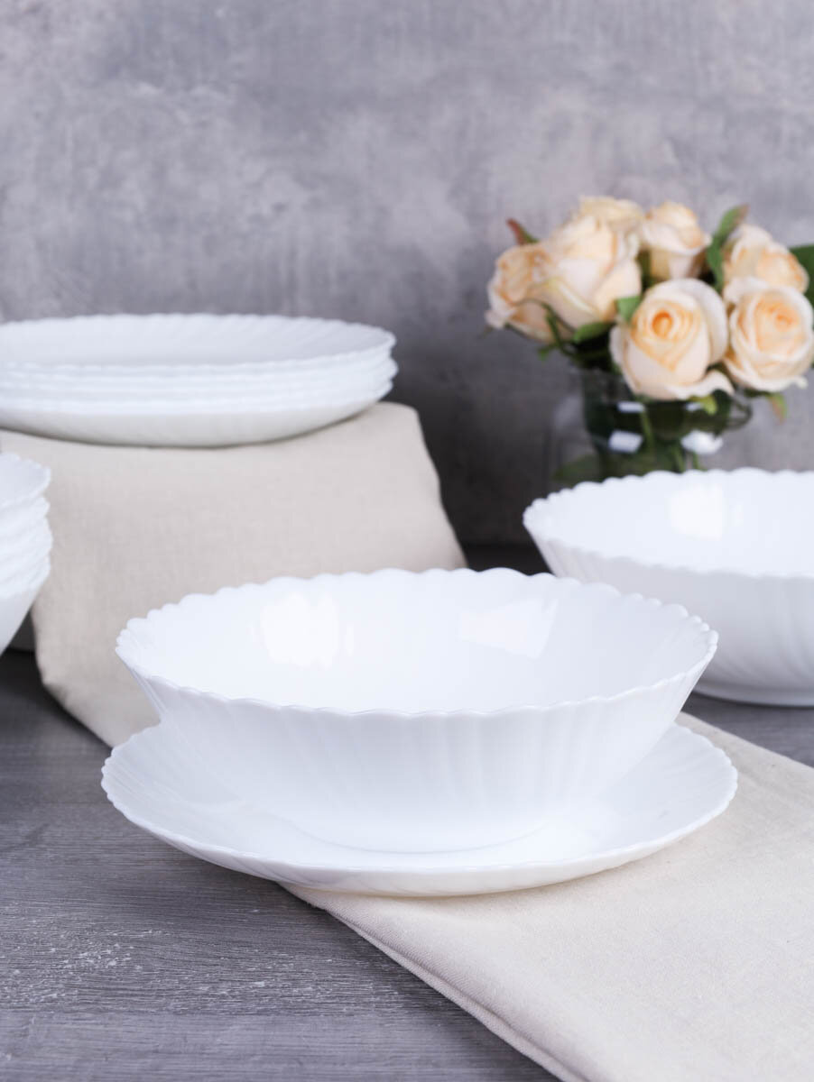 Набор глубоких тарелок Kutahya Rosa, 23 см, фарфор, белые, 4 шт.