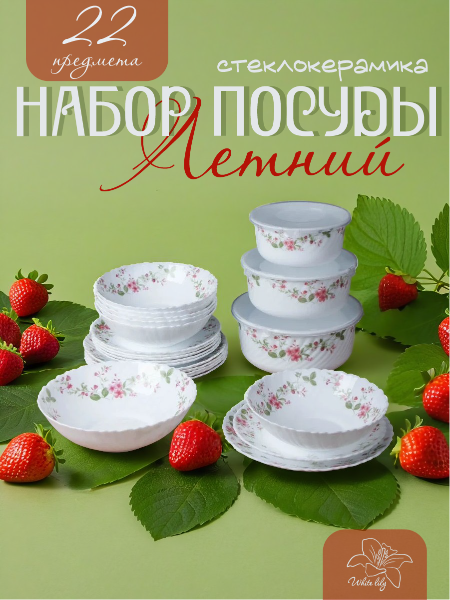 Набор столовой посуды на 6 персон «Летний»/ 22 предмета в комплекте информация: