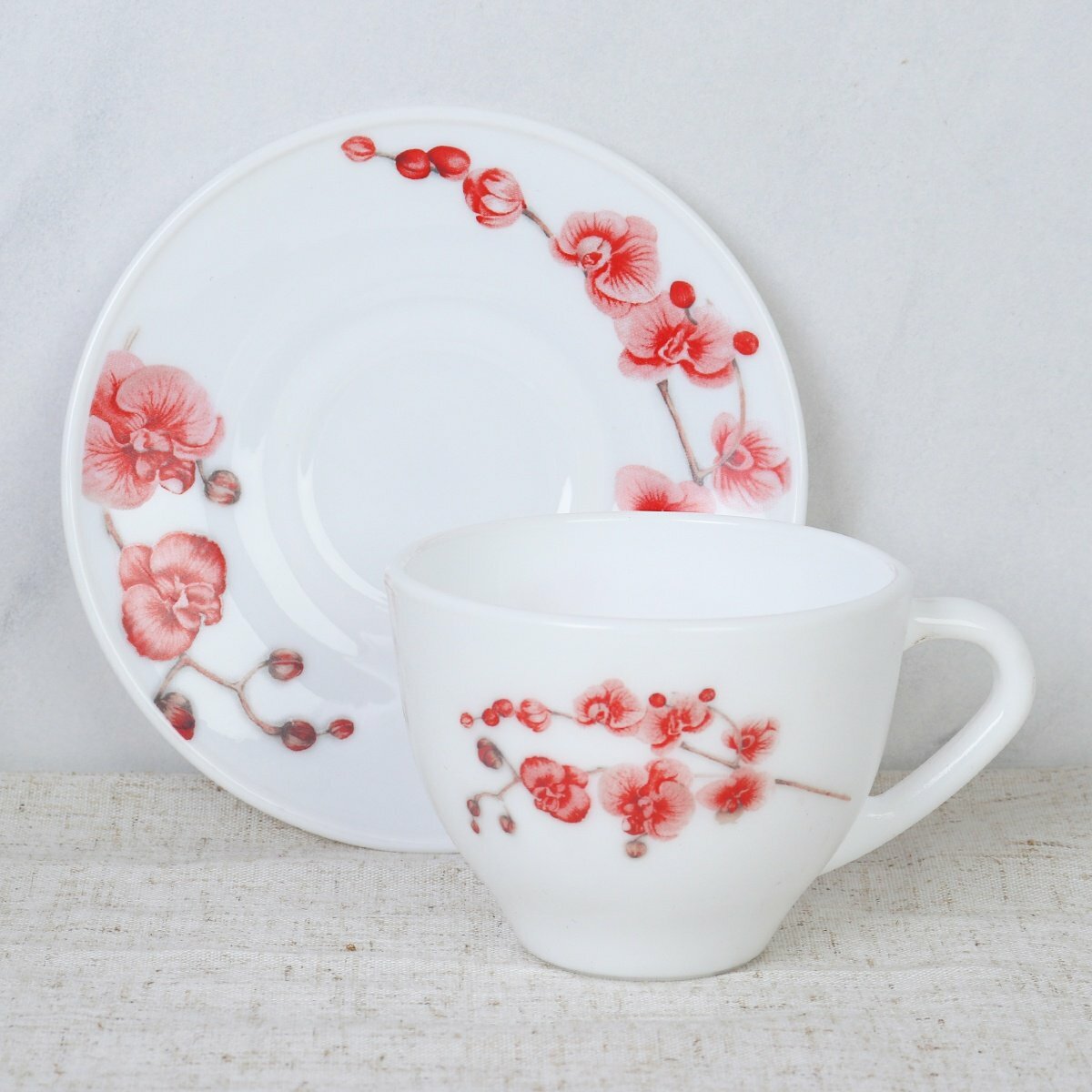 Чайный набор " Ветка орхидеи" 12 предметов на 6 персон, чайные пары -6 штук 220 мл / информация:
