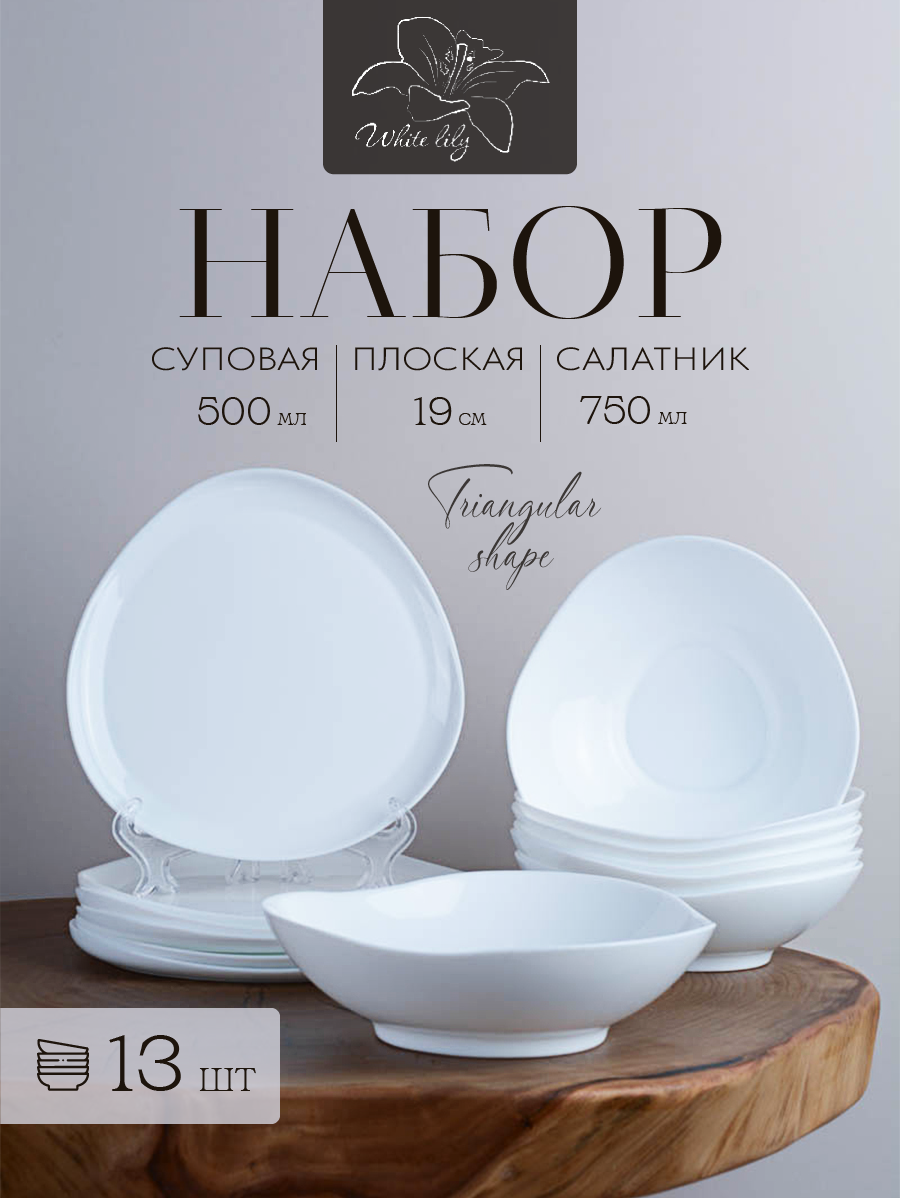 Столовый набор посуды 13 предметов/ Тарелки на 6 персон Треугольная форма информация: