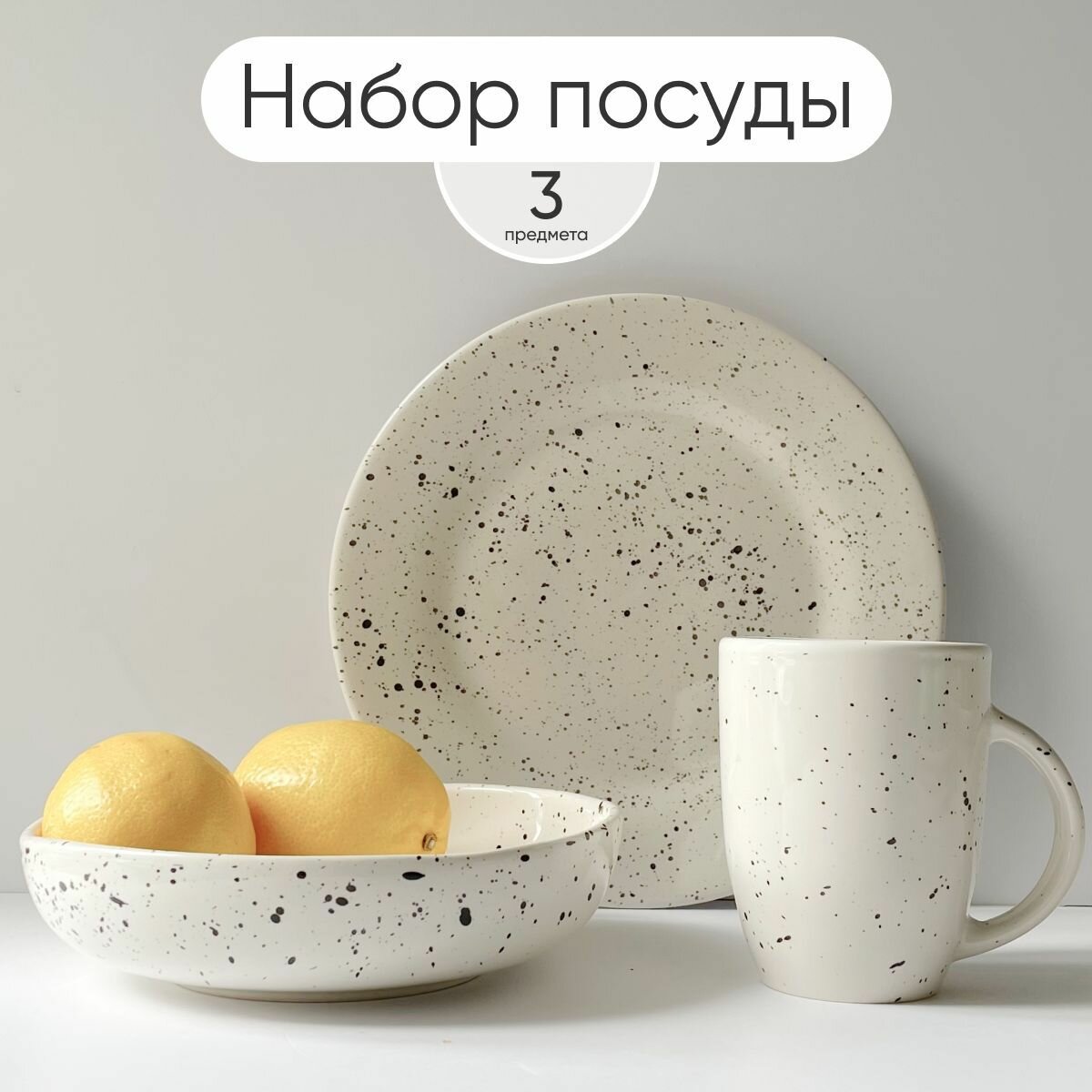 Отзывы на Сервиз столовый 3 предмета, набор тарелок, посуда в крапинку Chasha