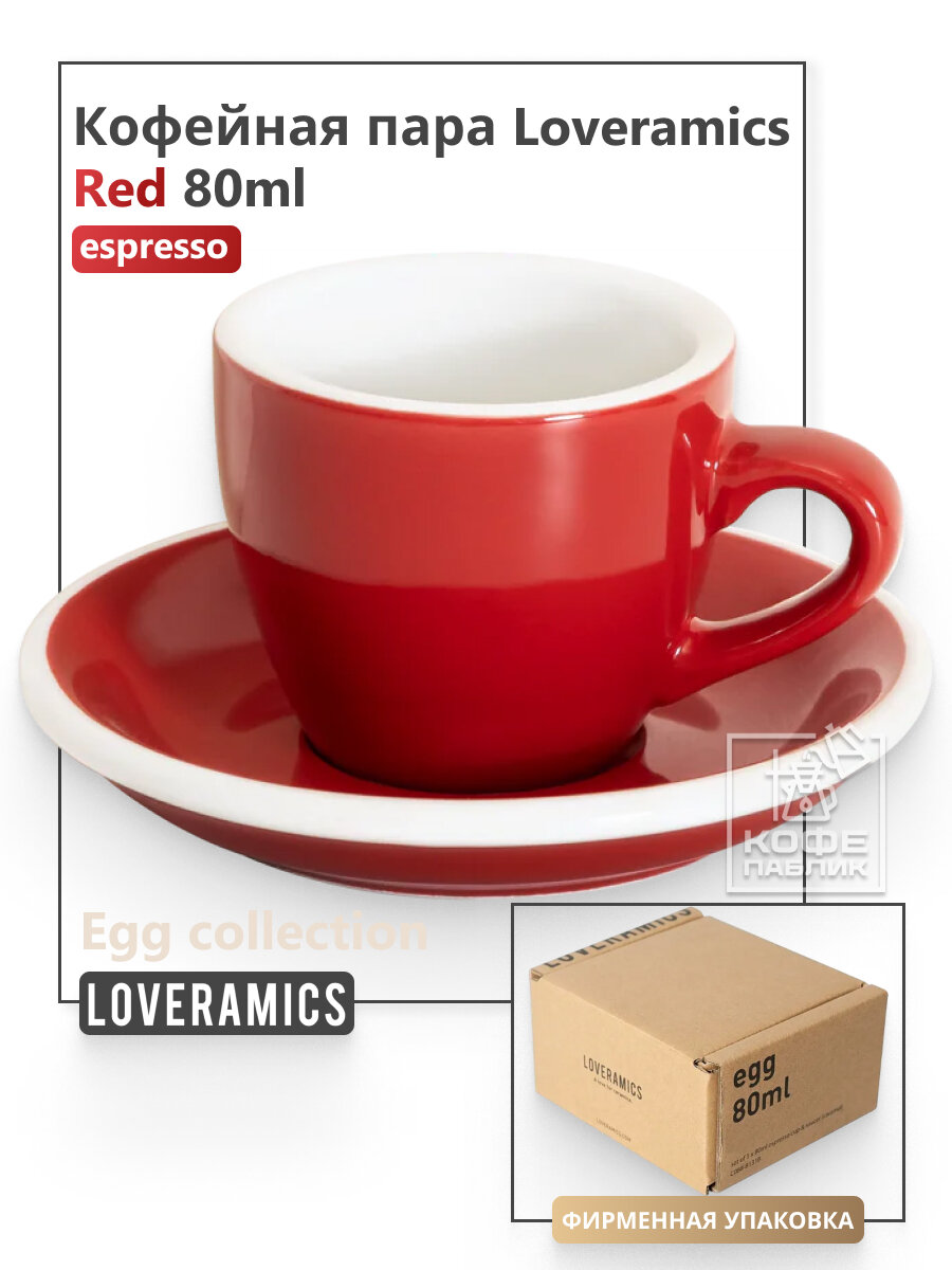10 цен на Кофейная пара Loveramics Egg 80 мл, цвет Red (Красный), BOX, керамический фарфор
