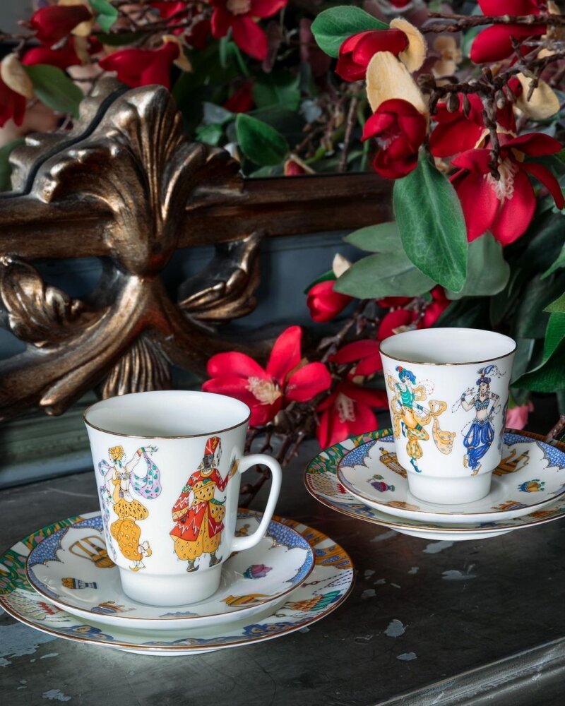 Кофейный набор 165 мл. Форма "Майская", рисунок "Балет. Спящая красавица". Костяной фарфор. Кофейная пара и десертная тарелка. Императорский фарфоровый завод ИФЗ ЛФЗ 6 032 ₽