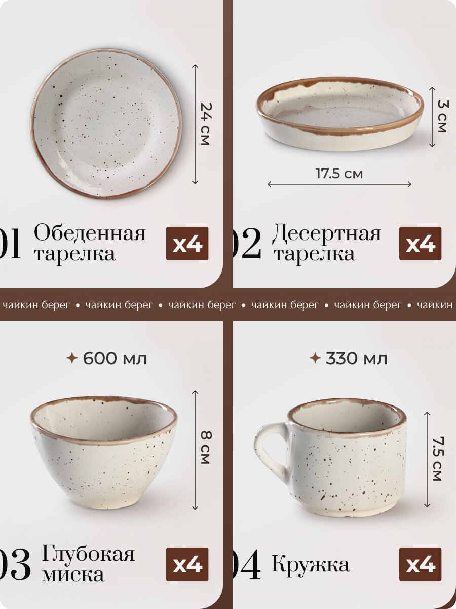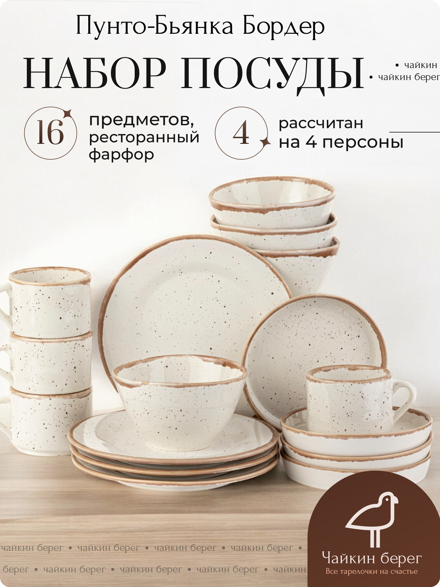 Набор посуды на 4 персоны, 16 предметов "Бордер", Пунто-Бьянка информация: